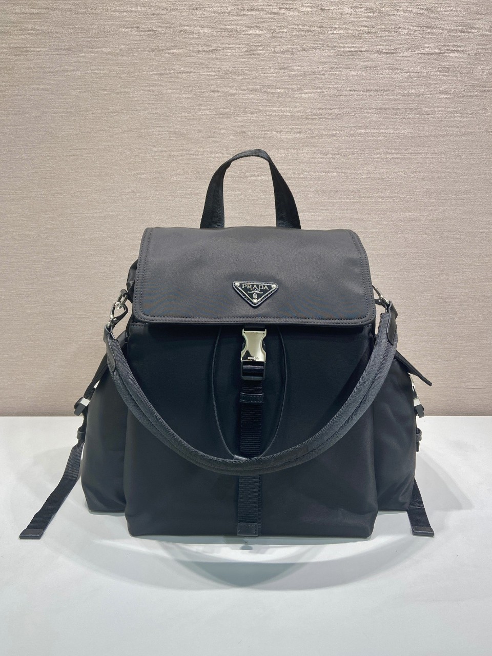 Prada 프라다 2VZ118 Re-Nylon & 사피아노 디테일 익스플로러 백팩 – 블랙..