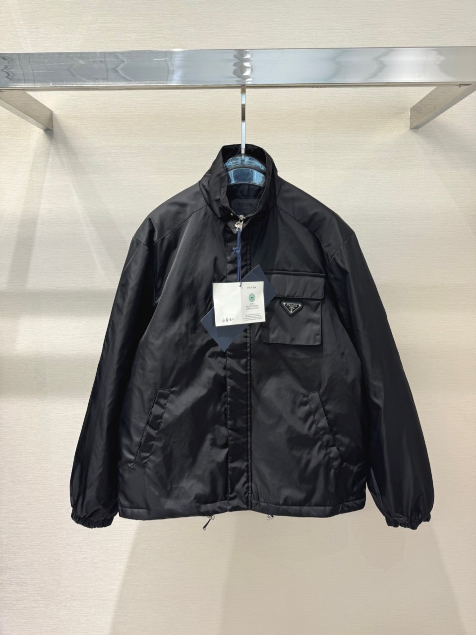 PRADA 프라다 25SS 하이넥 리나일론 바람막이 자켓 – 블랙