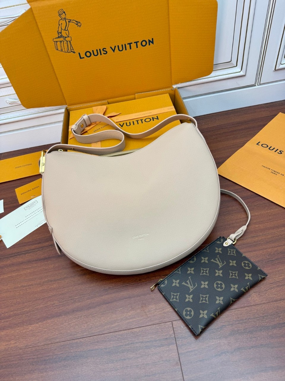 루이비통 로우 키 쿠키 오프화이트. (듀티프리)Louis Vuitton Low Key Cookie Off White모델코드: M14635 (프리미엄 라인)요즘 조용한 럭셔리 라인에서 가장 핫한 모델.어깨에 걸었을 때 착 감기는 반달 실루엣이 정말 예쁘고,로고가 과하지 않아서 가죽의 결감과 쉐입 자체가 고급스러움을 만드는 제품입니다.오프화이트 컬러는 특히피부톤을 환하게 살려주고, 코디가 확 고급스러워 보여서봄/여름 시즌은 물론 사계절 내내 데일리로 가장 인기 많은 컬러입니다.✔ 프리미엄 업그레이드 버전✔ 고급 가죽 사용 (부드러운 촉감 + 탄탄한 결감)✔ 하드웨어 / 바느질 / 엣지 마감 완성도 강화✔ 실물 촬영 제품과 동일 구성✔ 파우치 포함 세트 구성 + 선물 패키지 풀 구성---제품 포인트제품명: 루이비통 로우 키 쿠키모델코드: M14635색상: 오프화이트(아이보리 톤)구성: 로우 키 쿠키 백 + 파우치소재: 프리미엄 가죽착용: 숄더 / 데일리---사이즈32 x 26 x 5 cm