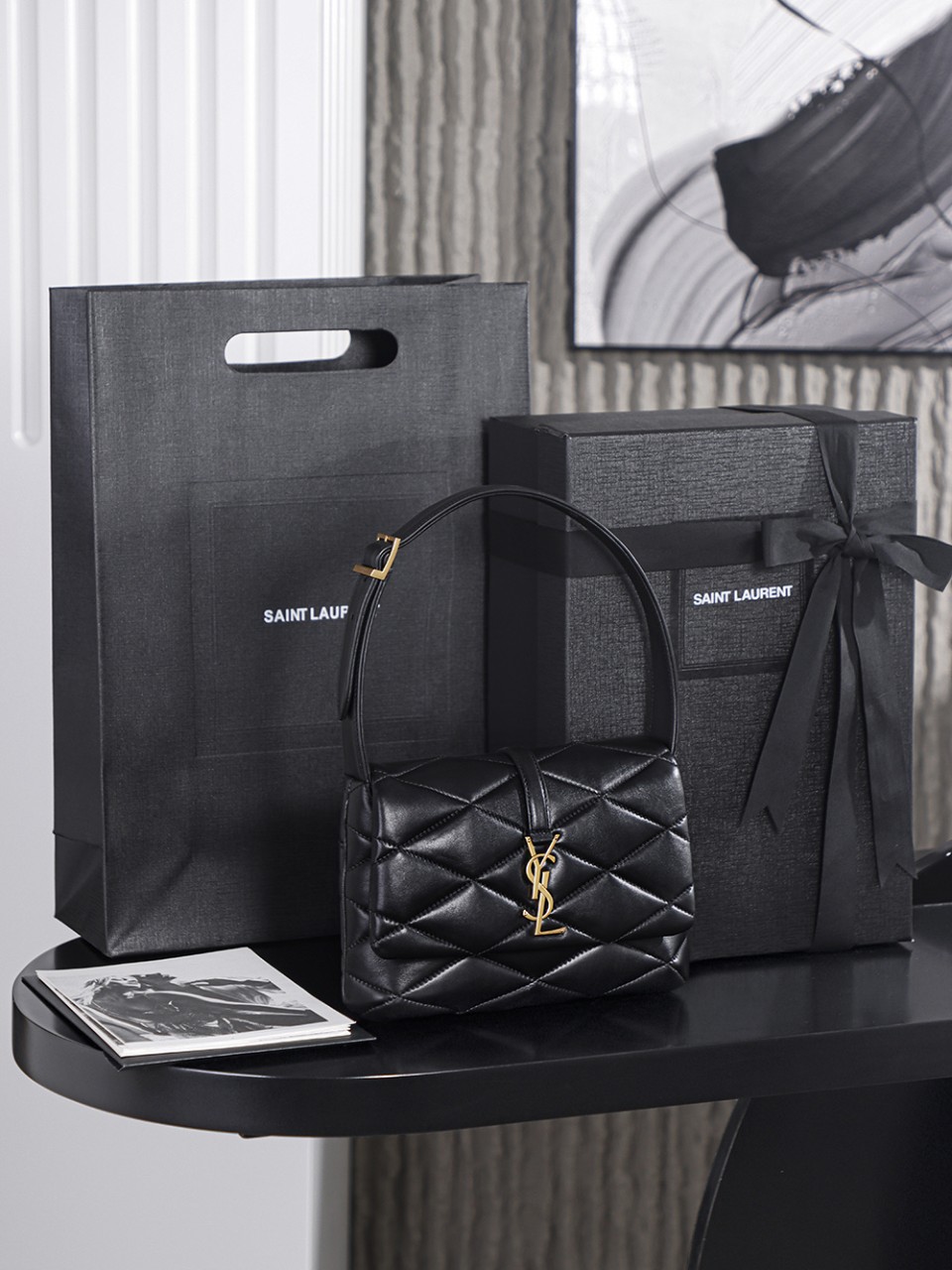 클래식한 퀼팅 패턴과 골드 YSL 로고의 조합으로 세련된 고급스러움 표현