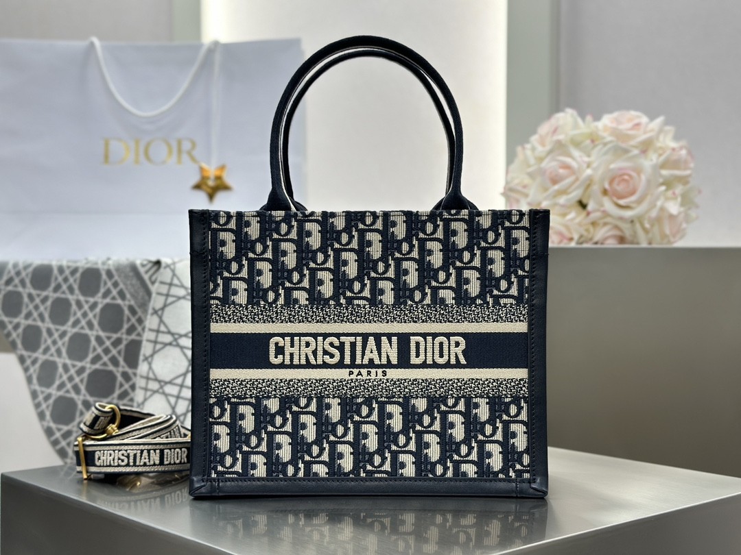 Dior 디올 북토트 Book Tote 신상 가죽 버전 – 블루 오블리크 스몰