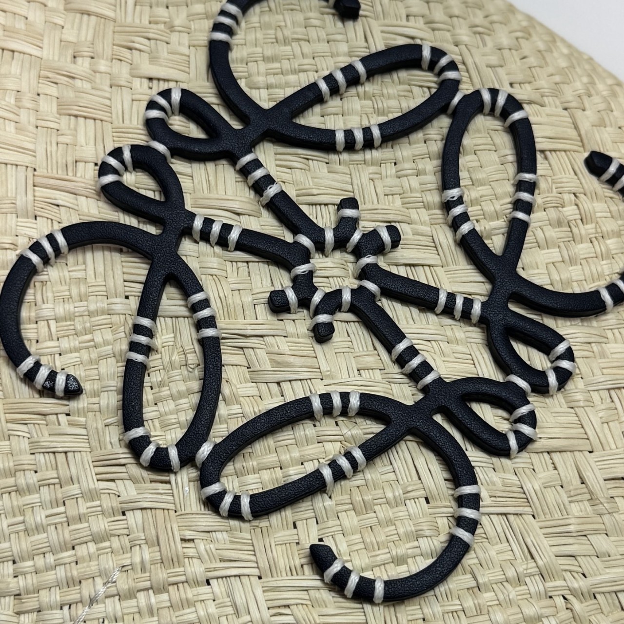 라피아와 송아지가죽의 조화로 완성된 로에베 아나그램 바스켓백.