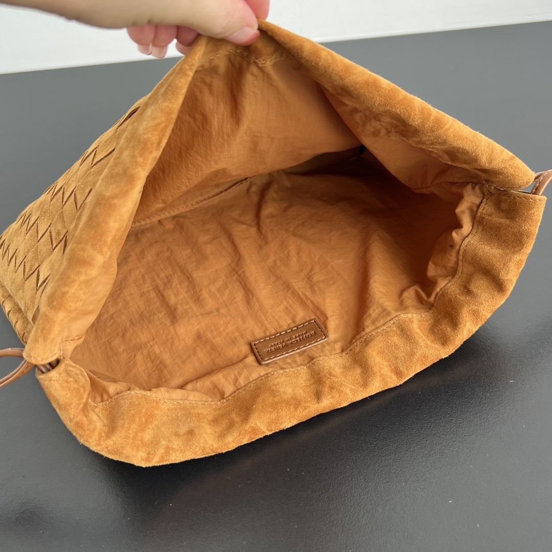 아이코닉 인트레치아토 위빙 디자인 : 브랜드 특유의 고급스러운 직조 패턴으로 완성된 감각적 스타일 드로스트링 클로저 : 자연스러운 주름과 부드러운 개폐감으로 편리하면서도 고급스러운 무드 연출