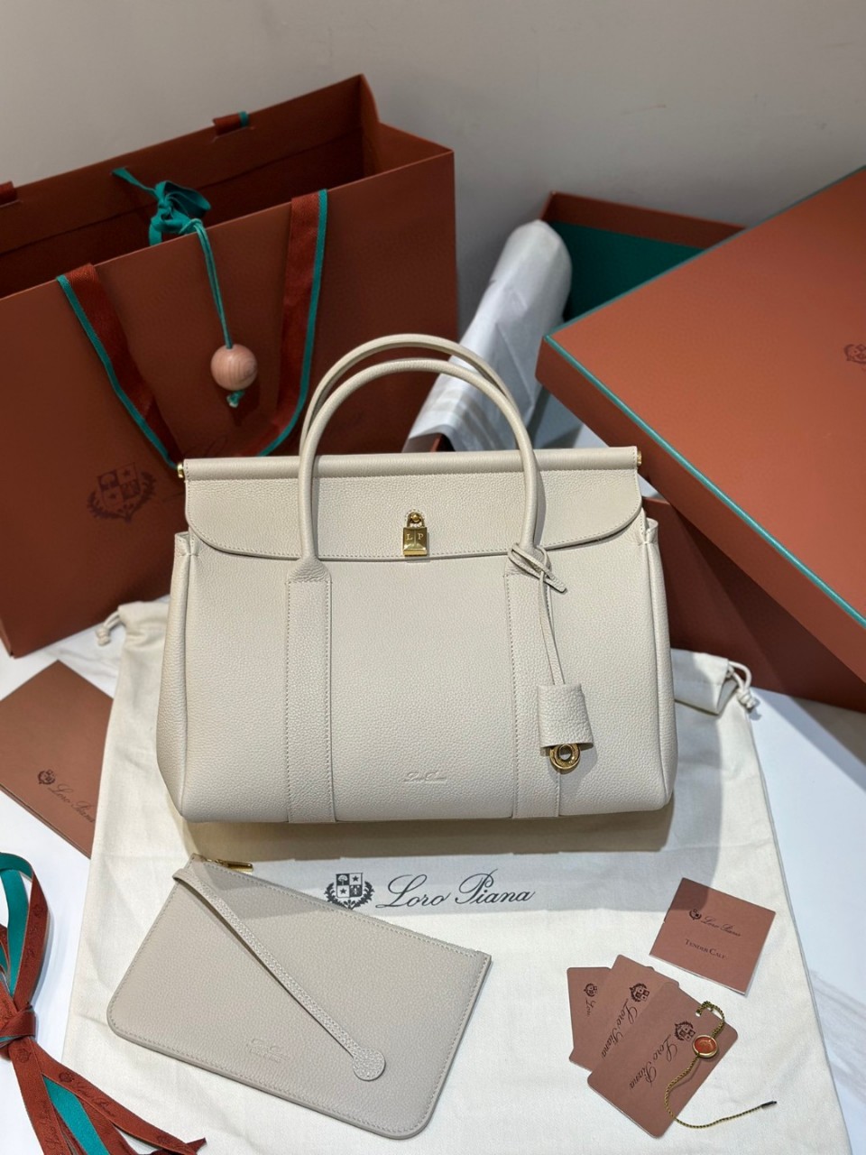 로로피아나 룸백의 클래식한 직조기(loom) 감성을 가장 우아하게 담아낸 라이트 스톤 그레이 컬러.