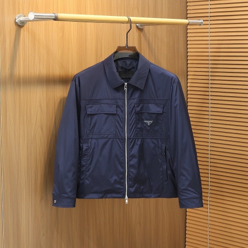 프라다 시그니처 리나일론 원단으로 가볍고 탄탄한 내구성, 고급스러운 광택감이 특징. 미니멀한 디자인에 트라이앵글 로고 디테일로 브랜드 아이덴티티 완성. 깔끔한 카라형 집업 스타일로 포멀과 캐주얼을 모두 아우르는 활용도 높은 아우터.