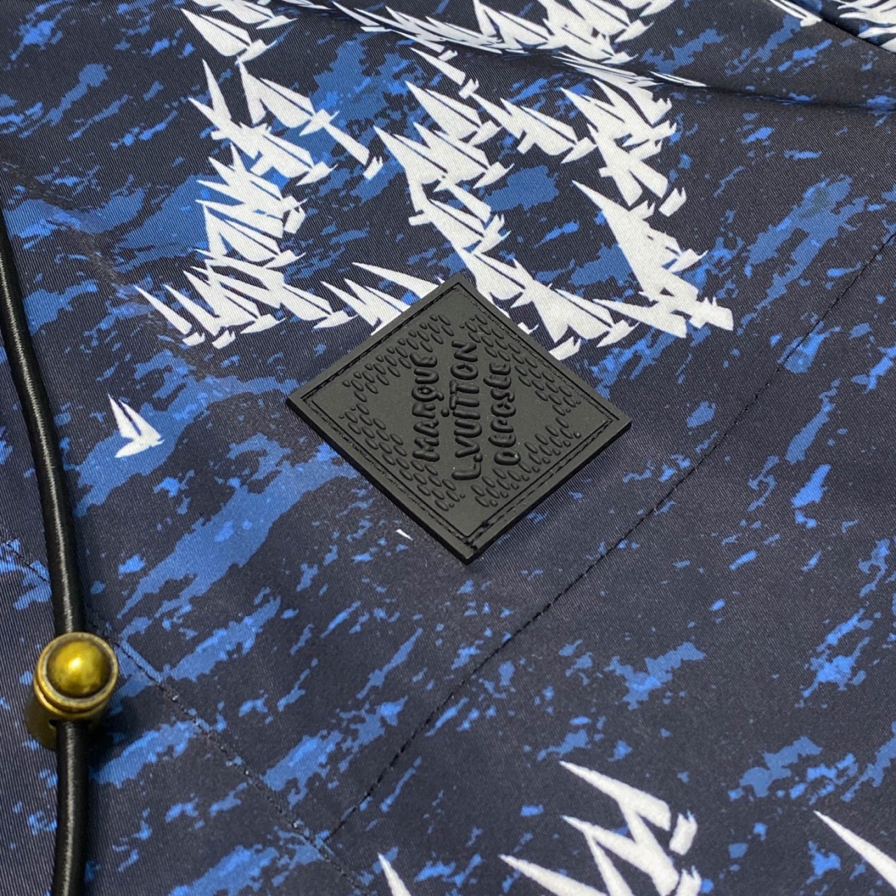LV 로고 지퍼 헤드 & 가슴 고무 명판 → 절제된 럭셔리 포인트