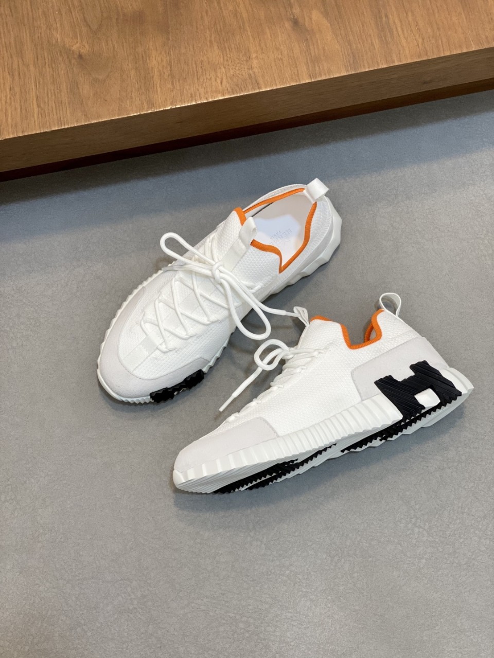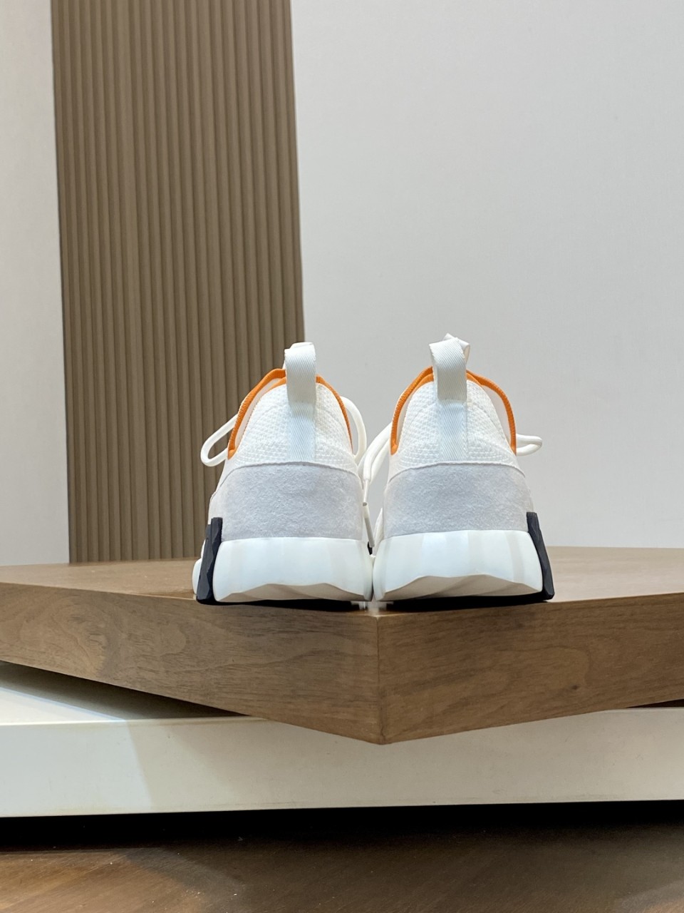 에르메스 화이트 & 오렌지 디테일 스니커즈는 순백의 화이트 베이스에 오렌지 포인트를 더해,