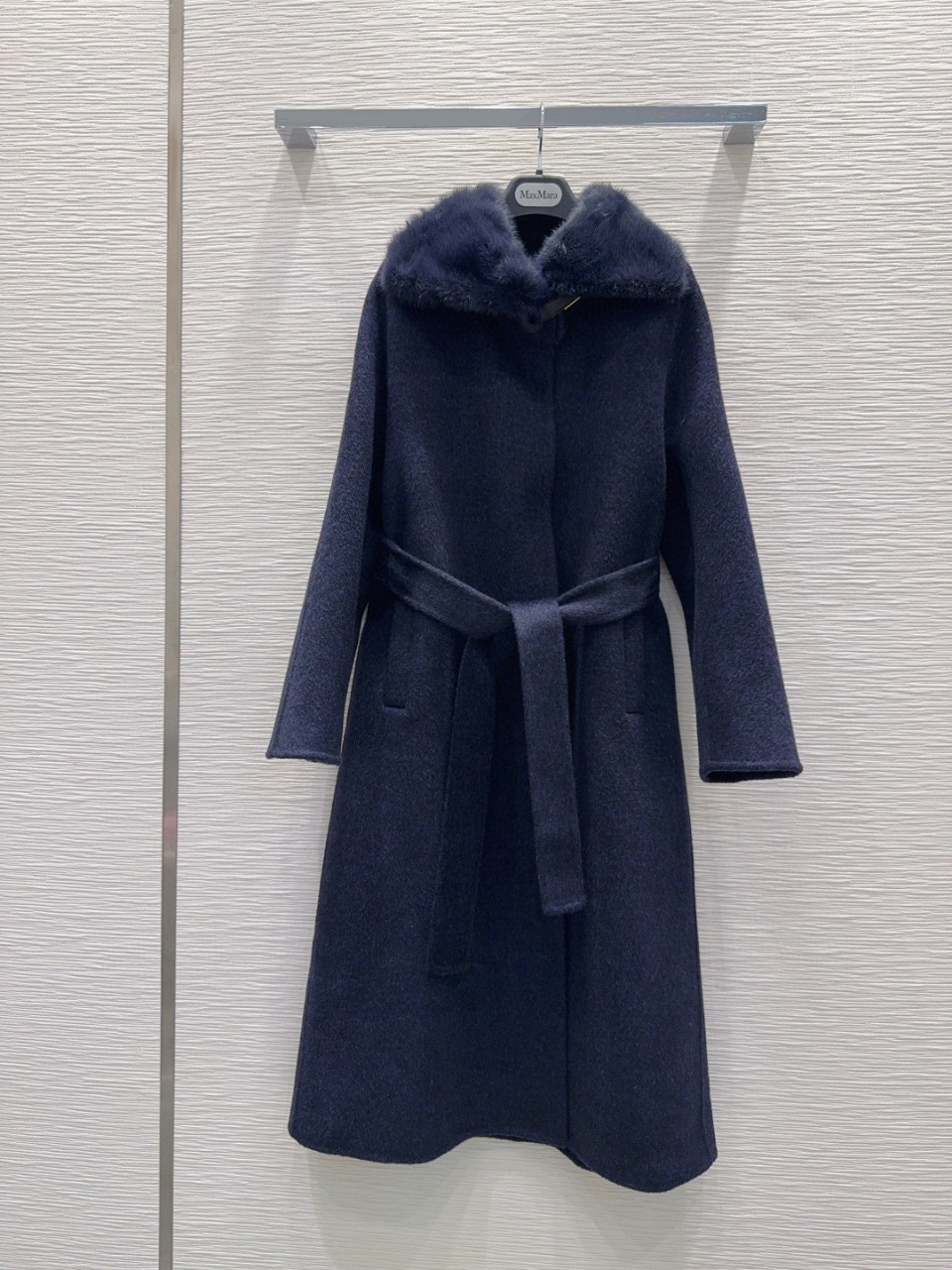 막스마라 더블페이스 울 코트 (폭스퍼 후드·벨트 포함)