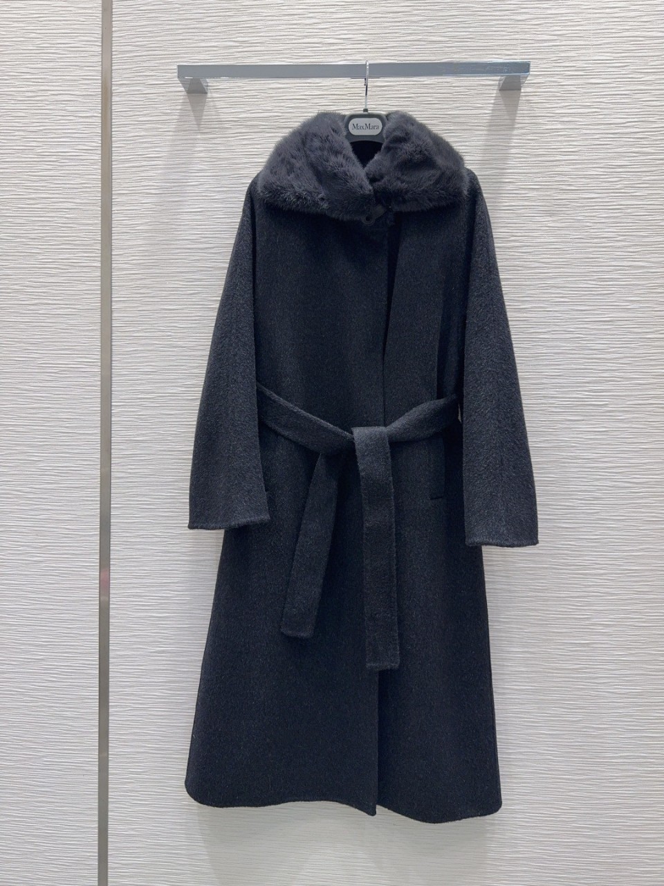 막스마라 더블페이스 울 코트 (폭스퍼 후드·벨트 포함)