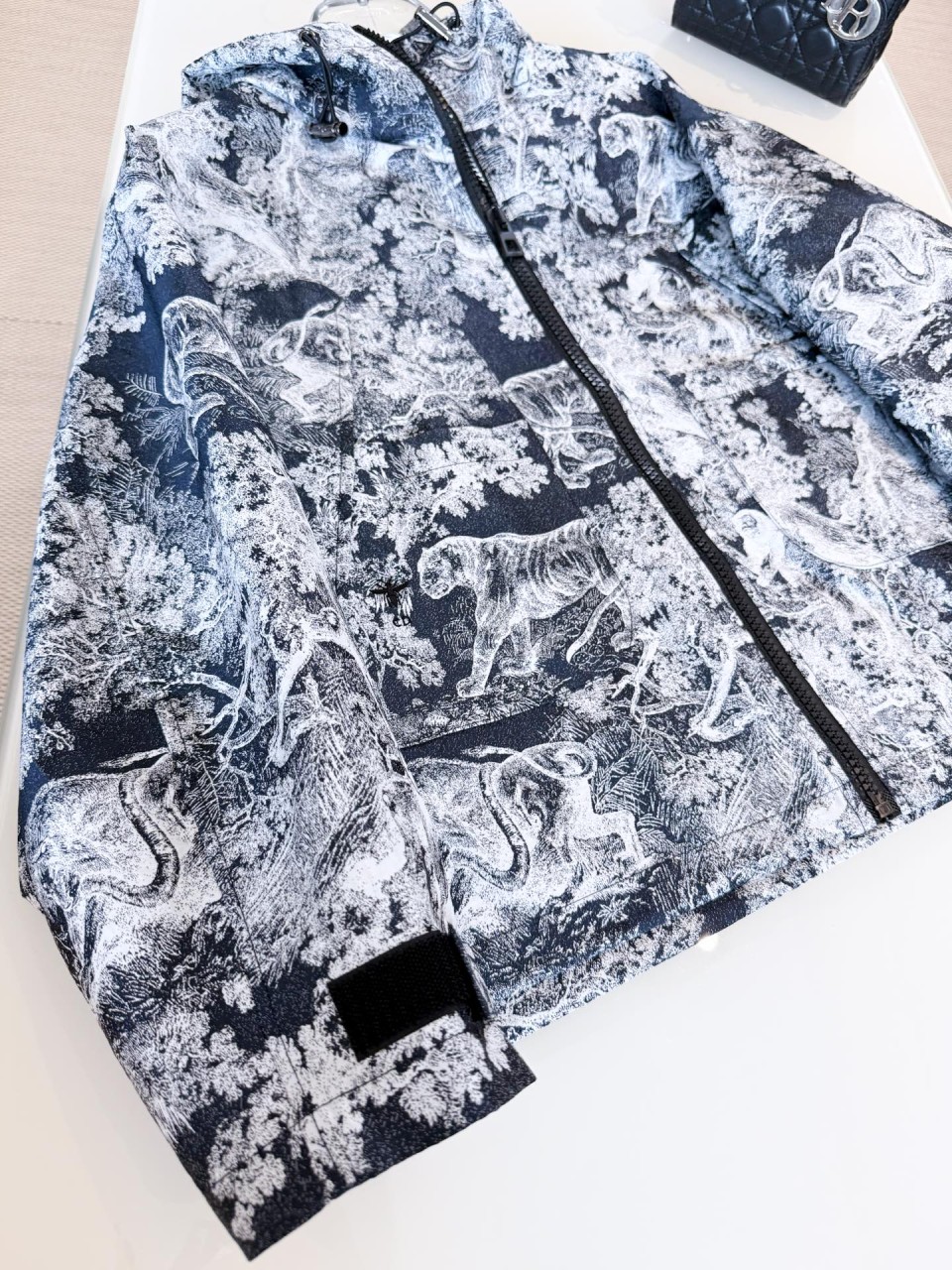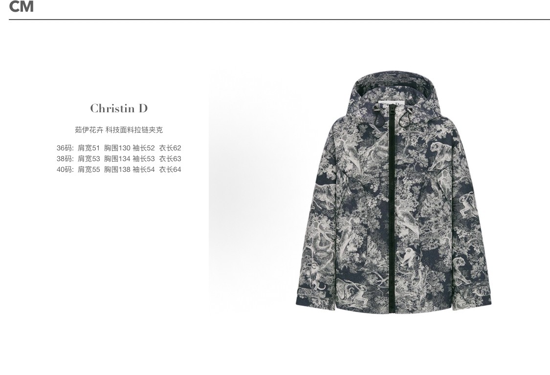 디올의 아이코닉한 뜨왈 드 주이(Toile de Jouy) 플라워 프린트가 돋보이는 후드 코트입니다.