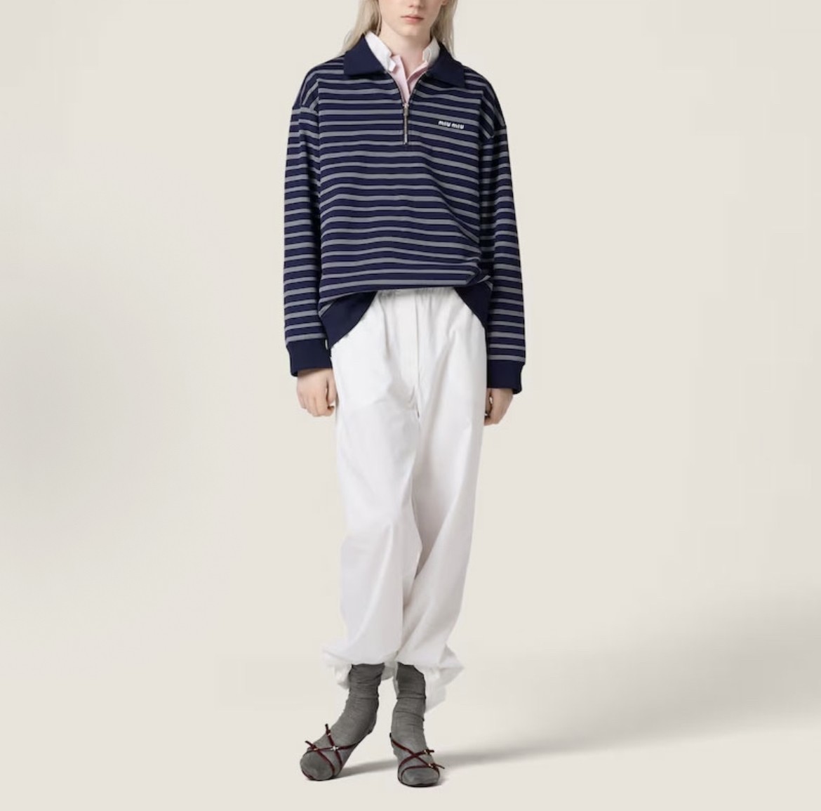 MIU MIU 25SS 미우미우 스트라이프 반집업 니트 폴로