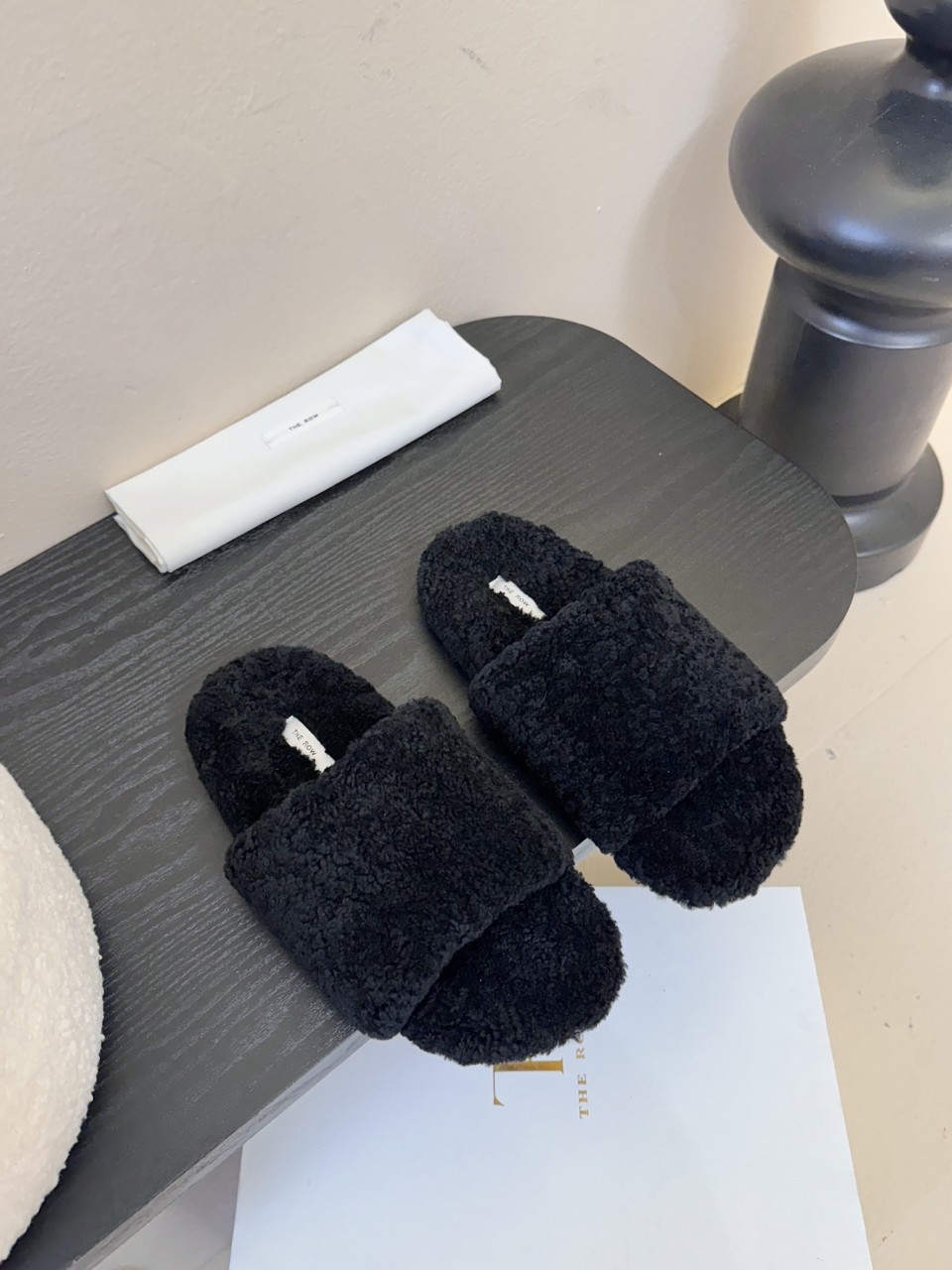 THE ROW 25S 양모 플랫 퍼 슬리퍼 (블랙)