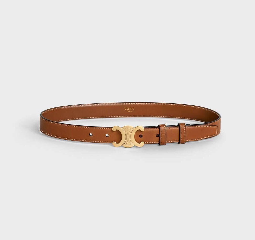 CELINE 2025 트리오프 버클 브라운 가죽 벨트 (2.5cm)