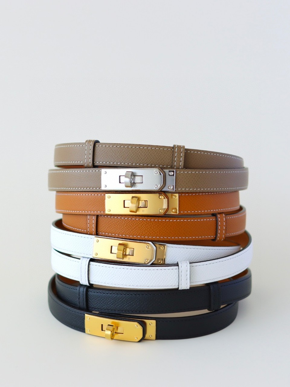 에르메스 특유의 절제된 미니멀 감성이 돋보이는 슬림 라인의 여성 레더 벨트 모델입니다.