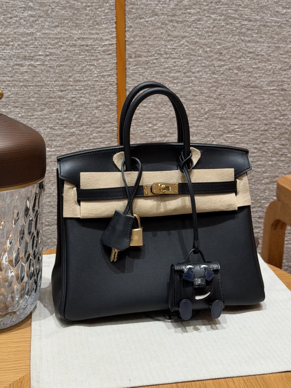 Hermès Birkin 25 Noir Gold Swift에르메스를 상징하는 가장 클래식한 컬러 조합.블랙(Noir) 컬러의 스위프트 가죽 특유의 매끈한 결감과골드 하드웨어가 어우러져 가장 정석적인 버킨의 품격을 완성합니다.---제품 특징프랑스산 스위프트(Swift) 가죽 사용부드럽고 고운 평직 결감, 은은한 광택블랙(Noir) 컬러의 타임리스한 매력골드 하드웨어 클래식 조합전체 공정 고급 수작업 제작하드웨어 수작업 각인정강(스틸) 베이스 + 18K 골드 도금 오금실제 고객 주문 제작 후 실사 촬영 제품---사이즈가로 25cm × 세로 20cm × 폭 13cm---활용 추천격식 있는 자리부터 데일리까지유행을 타지 않는 블랙 버킨 25는첫 버킨으로도, 소장용 클래식 아이템으로도 가장 안정적인 선택입니다.---