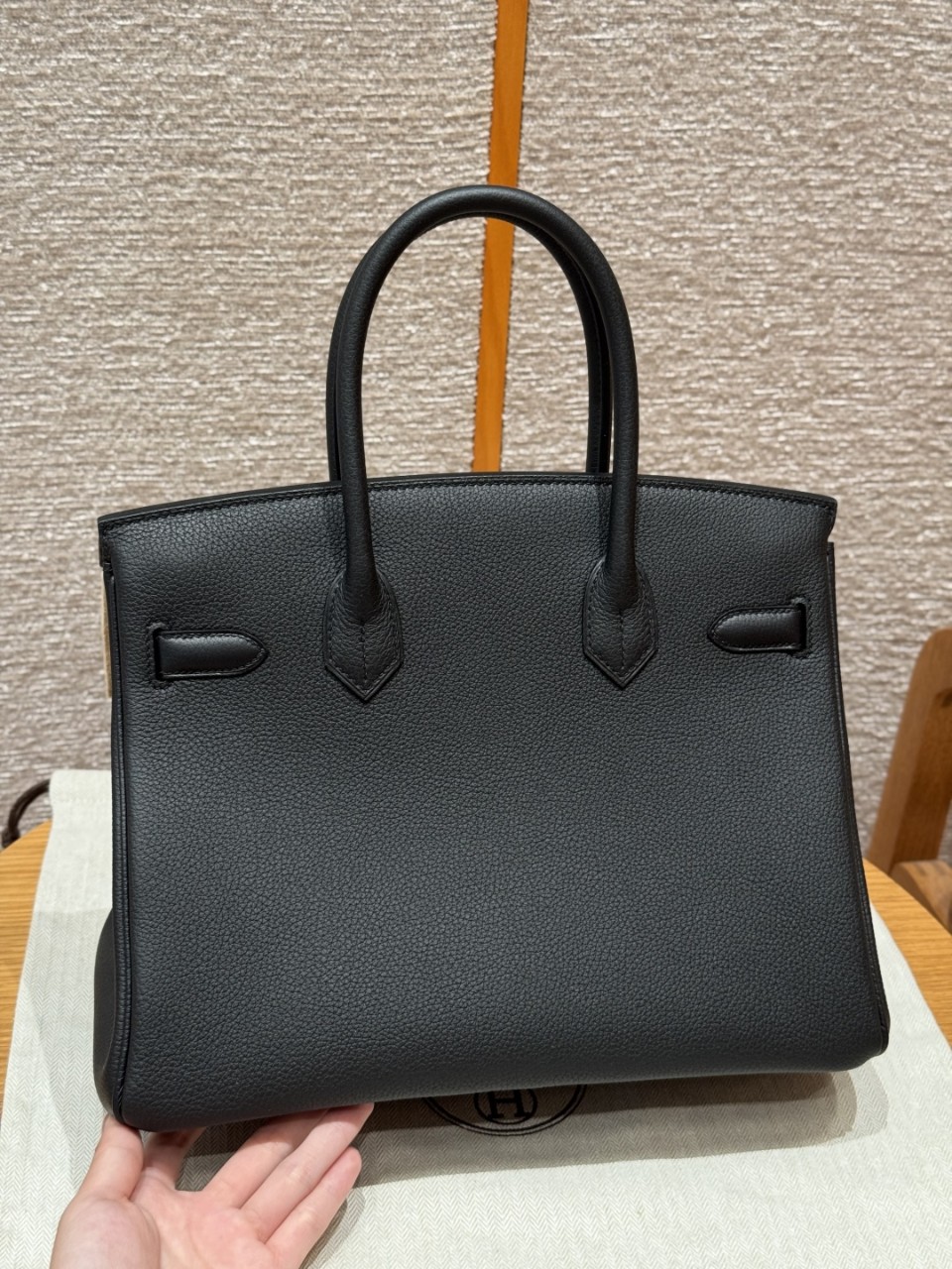에르메스 아이코닉 Birkin 30 사이즈 Togo Calfskin → 은은한 결감과 부드러운 질감, 스크래치에 강한 내구성 컬러: Noir (89) – 가장 클래식하고 세련된 블랙
