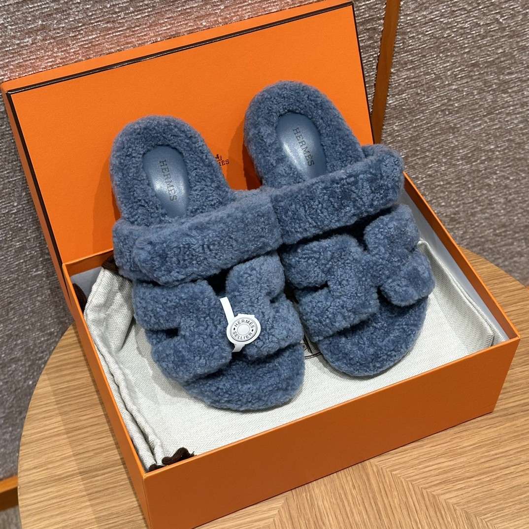 HERMÈS 에르메스 시프레 샌들 (양털 울스킨 / Blue 블루)
