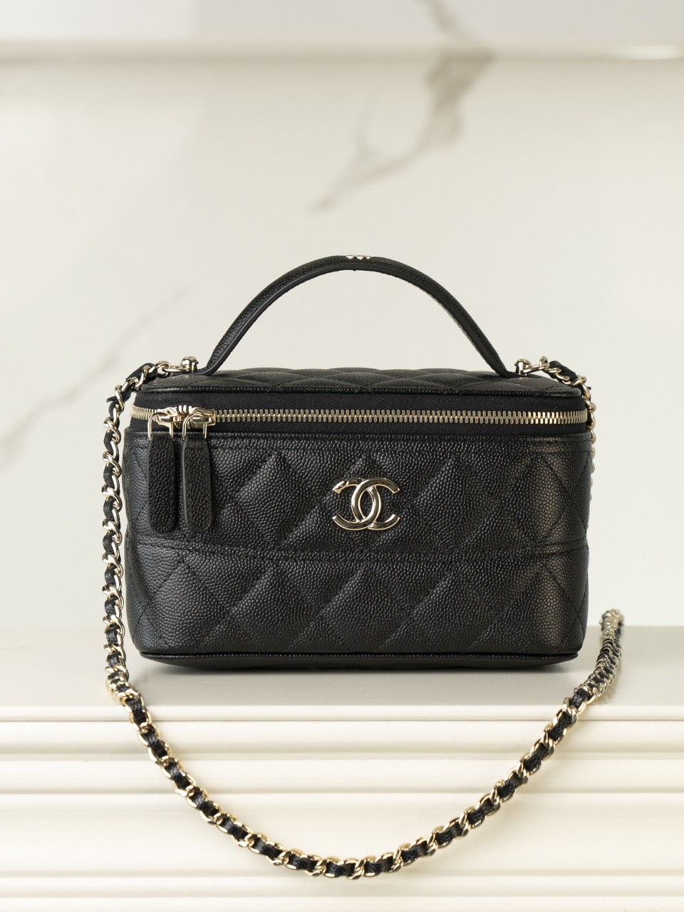Chanel 25C 블랙 골드 카프스킨 핸들 박스백 (메이크업백 스타일)