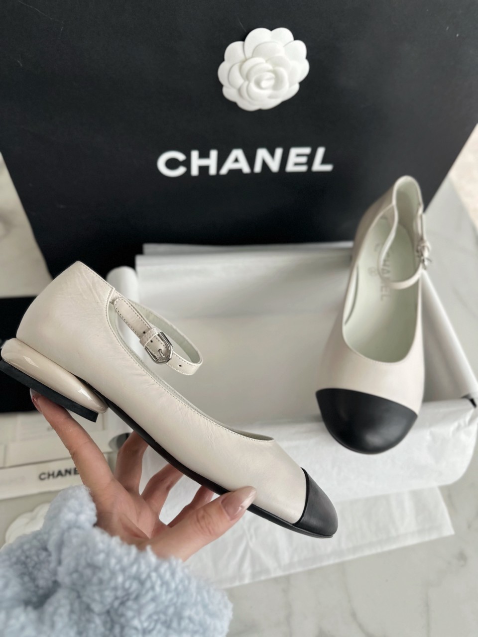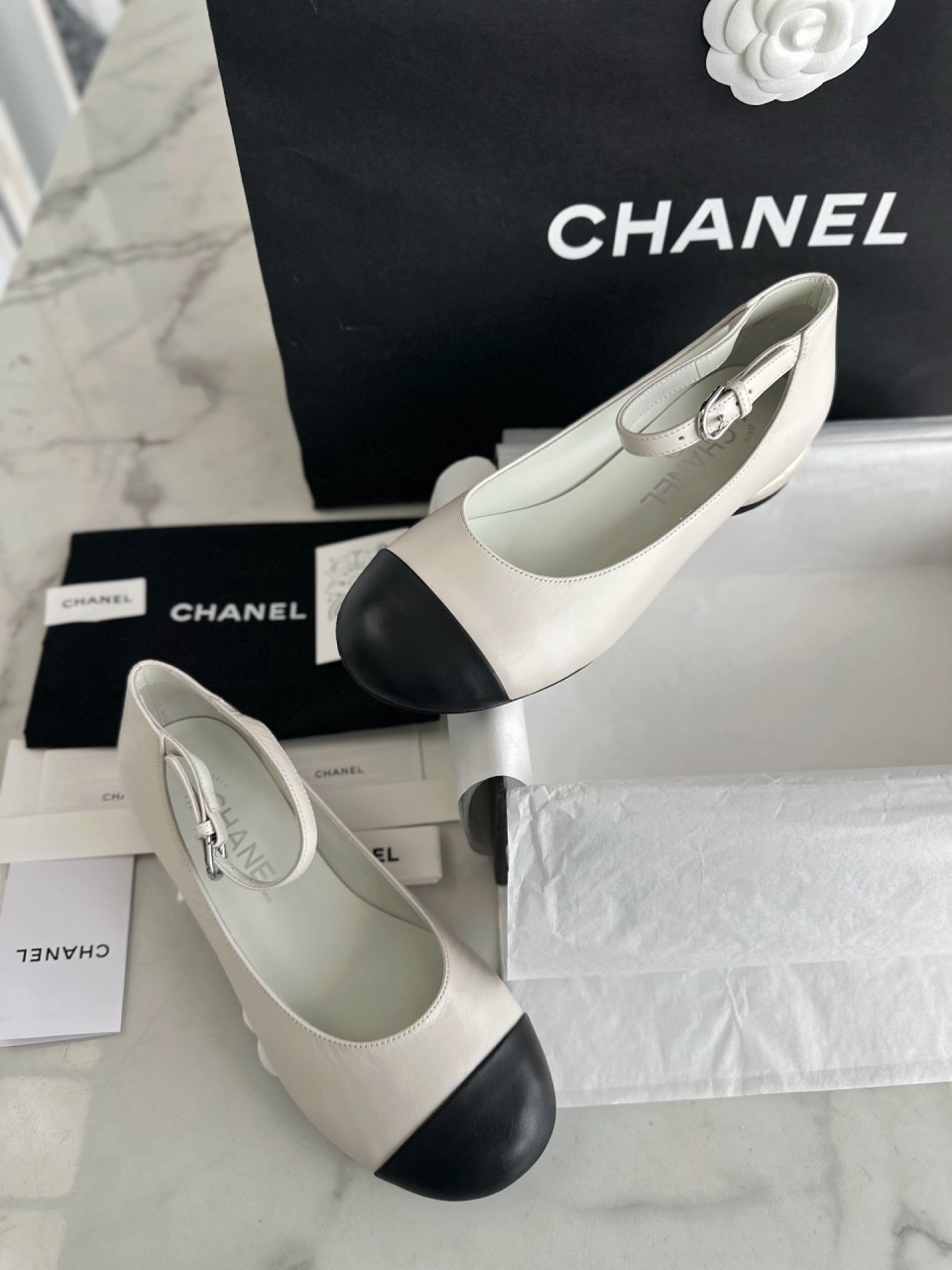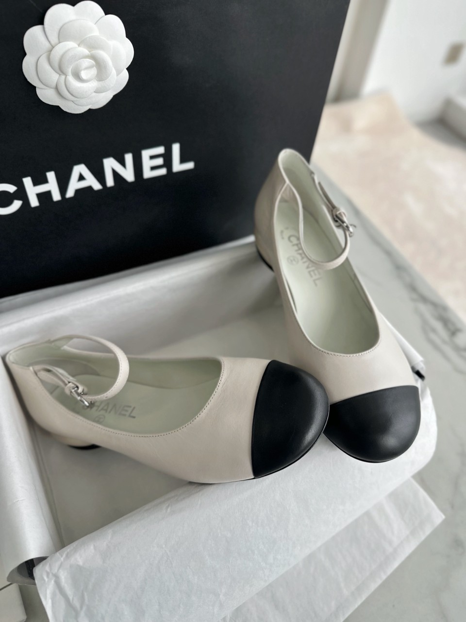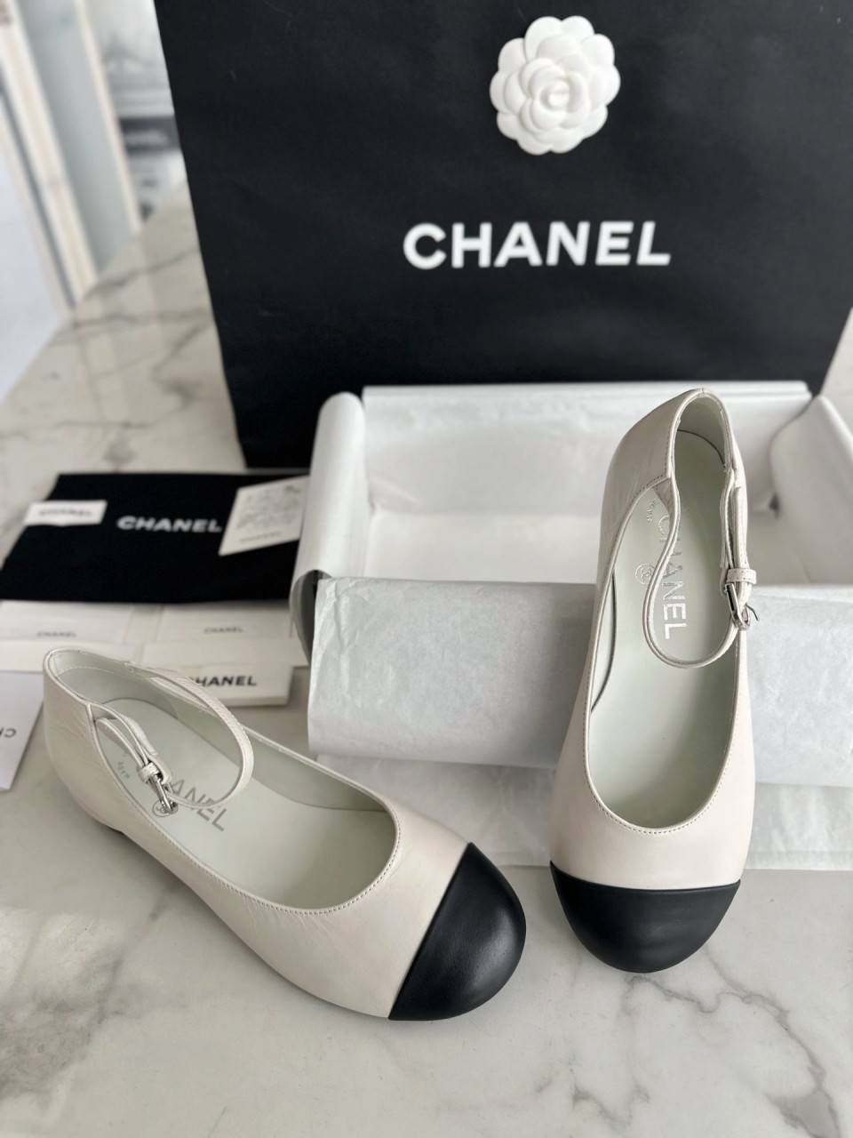 CHANEL 샤넬 화이트펄 메리제인 플랫슈즈