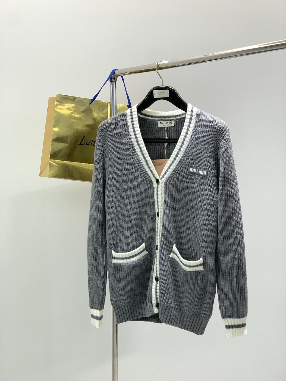 Miu Miu 2025 F/W 신상, 부띠크 동시 출시된 정품급 하이퀄리티 라인 우아한 브이넥 디자인으로 클래식한 실루엣 완성