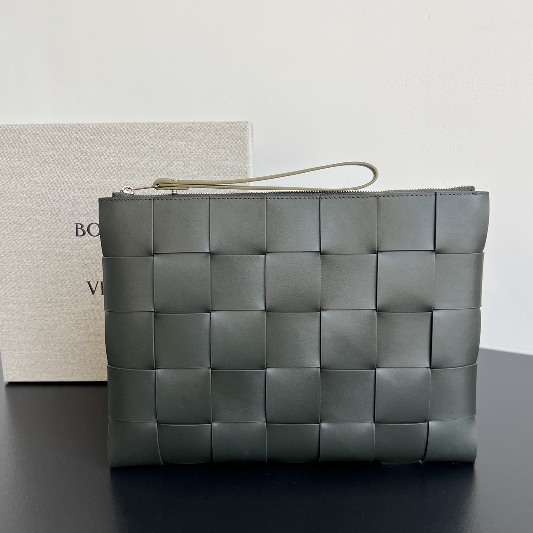 보테가 베네타 인트레치아토 송아지 가죽 파우치보테가베네타의 시그니처인 인트레치아토 위빙 기법을 그대로 담아낸 송아지가죽 파우치로,부드럽고 자연스러운 촉감의 소가죽이 손에 닿는 느낌부터 고급스러움을 전달합니다.전체적인 형태감이 깔끔하게 잡혀 있어데일리로 들기에도, 정장 스타일에 포인트 주기에도 완벽한 아이템입니다.내부에는 지퍼 포켓 & 카드/수납용 내부 스트랩이 있어 실용적이며,외출 시 필요한 필수품을 간편하게 담기 좋은 구조로 제작되었습니다.선물용으로도 매우 추천되는 베스트 아이템입니다.---✔ 제품 특징프리미엄 송아지 가죽 사용보테가베네타 인트레치아토 위빙 디자인내부 수납 구성 우수 (지퍼포켓 / 스트랩)가볍고 들기 좋은 슬림 파우치 형태남녀 모두 사용 가능한 유니섹스 디자인데일리 / 모임 / 출장 / 선물용 모두 적합---사이즈35 × 25 × 1 cm(슬림 파우치 스타일로 가볍게 휴대하기 좋은 크기)---