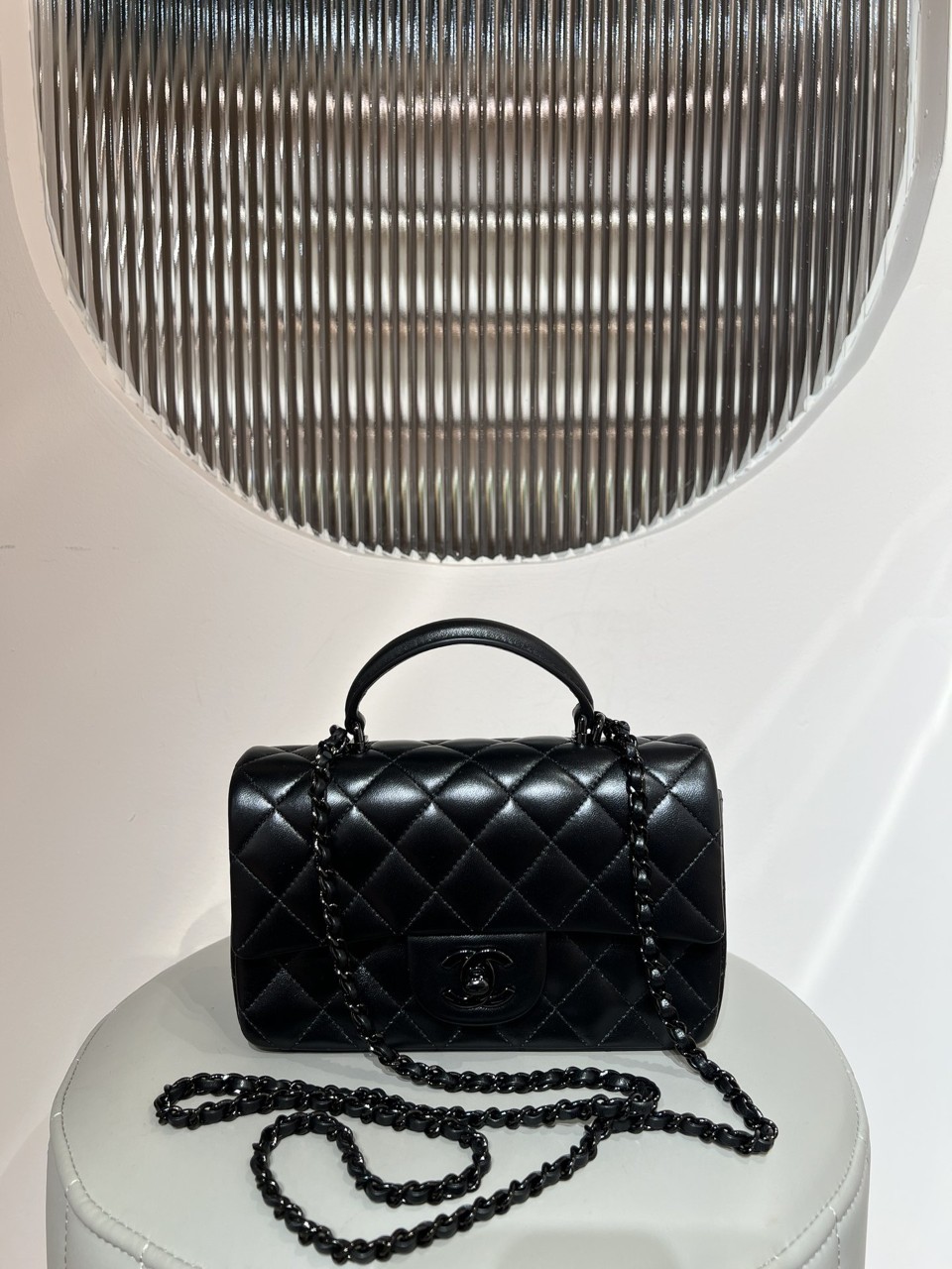 (지존샵) 샤넬 클래식 플랩 미니 탑핸들 (램스킨)지존공장 출고 제품으로, 별도의 연출 없이 실사 한 컷만으로도 고급스러운 완성도가 그대로 드러나는 모델입니다. 램스킨을 사용해 So Black 특유의 깊고 정제된 무광 톤을 구현했으며, 가죽의 결·탄력·복원력이 균형 있게 살아 있습니다.So Black 특유의 매트하고 깊이 있는 컬러감미니 사이즈 + 탑핸들 디자인으로 데일리/포멀 모두 활용 가능하드웨어 톤과 가죽 질감의 조화가 뛰어난 상급 마감실사 촬영만으로 품질이 증명되는 하이엔드 퀄리티브랜드: 샤넬 (Chanel)제품명: 핸들 장식의 미니 플랩 백 (Mini Flap Bag with Top Handle)소재: 램스킨 (Lambskin)색상: 블랙 / 쏘 블랙 (블랙 하드웨어)크기: 약 가로 20cm x 세로 12cm x 폭 6cm (미니 사이즈)특징: 클래식 플랩백 디자인에 상단 핸들이 추가되어 토트, 숄더, 크로스 등 다양하게 연출 가능합니다. 과장 없이도 차이가 느껴지는 지존공장 퀄리티.So Black 라인의 진가를 그대로 경험하실 수 있는 제품입니다.---