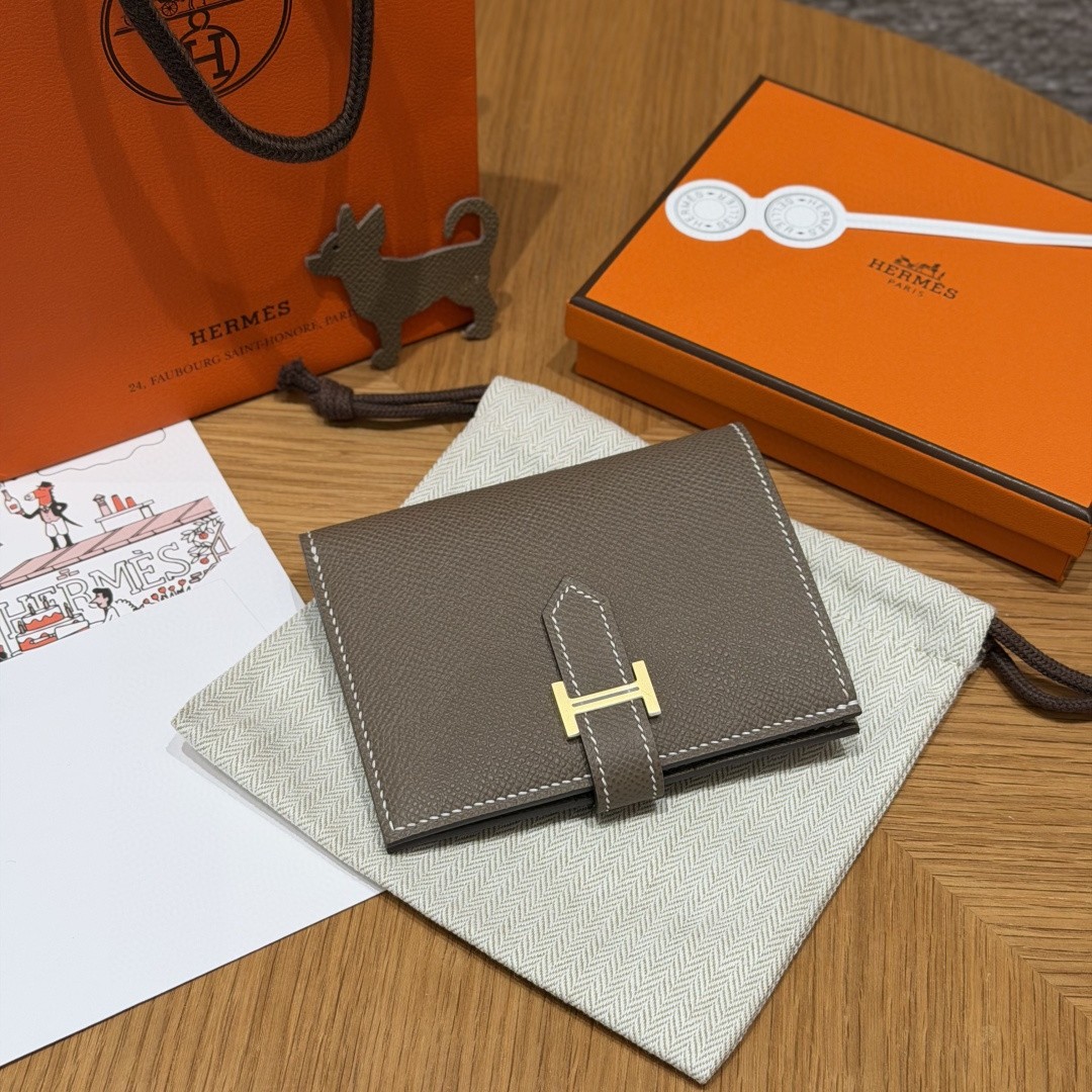 (찡댄공장) Hermès Bearn Compact Etoupe Gold Epsom에르메스 가죽 소품 중 가장 클래식한 아이콘, 베안 컴팩트.에르메스를 대표하는 에토프(Etoupe) 컬러와엡송 가죽 특유의 견고한 질감이 어우러져실용성과 고급스러움을 동시에 만족시키는 지갑입니다.---제품 특징프랑스산 엡송(Epsom) 가죽 사용스크래치에 강하고 형태 유지력이 뛰어난 가죽에토프(Etoupe) 컬러의 차분하고 고급스러운 톤골드 하드웨어 클래식 조합짧은 플랩형 컴팩트 디자인전체 공정 고급 수작업 제작하드웨어 수작업 각인정강(스틸) 베이스 오금실제 고객 주문 제작 후 실사 촬영 제품---사이즈가로 10.3cm × 세로 7.5cm × 폭 0.4cm---활용 추천작은 가방에도 부담 없이 수납 가능한 사이즈로카드지갑과 반지갑의 장점을 모두 갖춘 모델입니다.데일리용은 물론 선물용으로도 만족도가 높은에르메스 대표 가죽 소품입니다.---