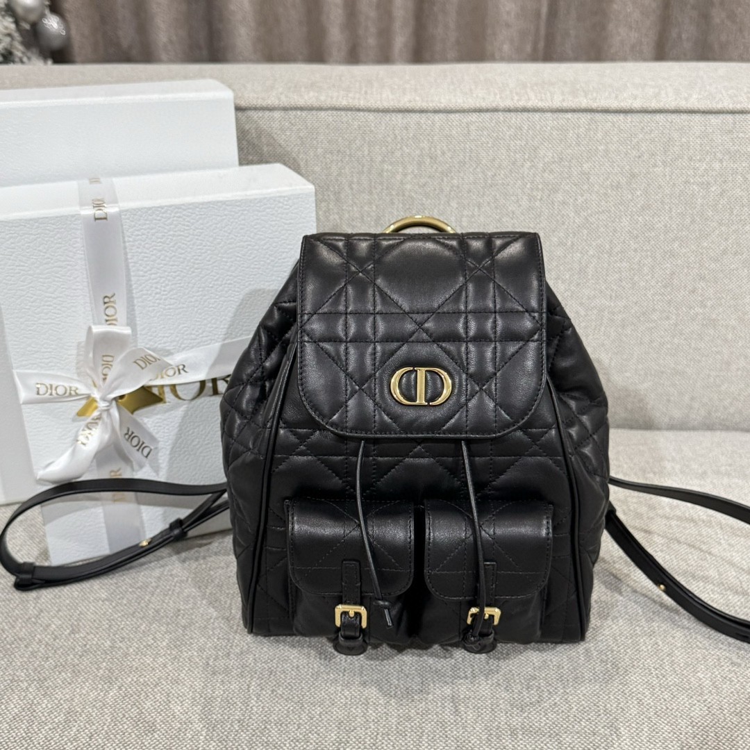 디올 CD 23 카로 백팩 블랙디올의 시그니처 카로(Caro) 라인을 백팩 형태로 재해석한CD 23 모델은 우아함과 실용성을 동시에 갖춘 데일리 백팩입니다.입체적인 캐나쥬 퀼팅 스티치가 전체 실루엣에 고급스러운 깊이를 더합니다.부드러운 블랙 양가죽 소재에 은은한 광택감이 살아 있으며,블랙 & 골드 톤 조합의 CD 로고 메탈 장식이 클래식한 포인트 역할을 합니다.플랩을 열면 드로스트링 구조의 메인 수납공간과양쪽 플랩 포켓이 구성되어 실사용 만족도가 높습니다.가죽 탑 핸들과 조절 가능한 숄더 스트랩 구성으로백팩 / 핸드캐리 모두 가능하며,데일리 외출은 물론 여행, 캐주얼부터 세미 포멀 룩까지폭넓게 어울리는 디올의 감각적인 데일리 백팩입니다.✔ 디올 시그니처 캐나쥬 퀼팅✔ 부드러운 블랙 양가죽 텍스처✔ CD 로고 골드 메탈 포인트✔ 수납력과 스타일을 모두 만족시키는 백팩 디자인---사이즈가로 23cm × 세로 26.7cm × 폭 12.5cm---