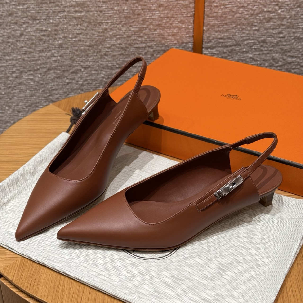 Hermès Lover 40 Slingback –  (Gold Brown)