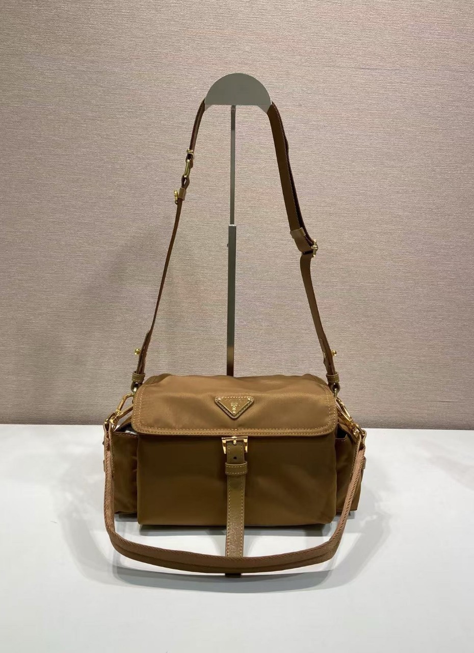Prada 프라다 1BD394 Re-Nylon 사피아노 디테일 메신저백 – 카멜 브라운..