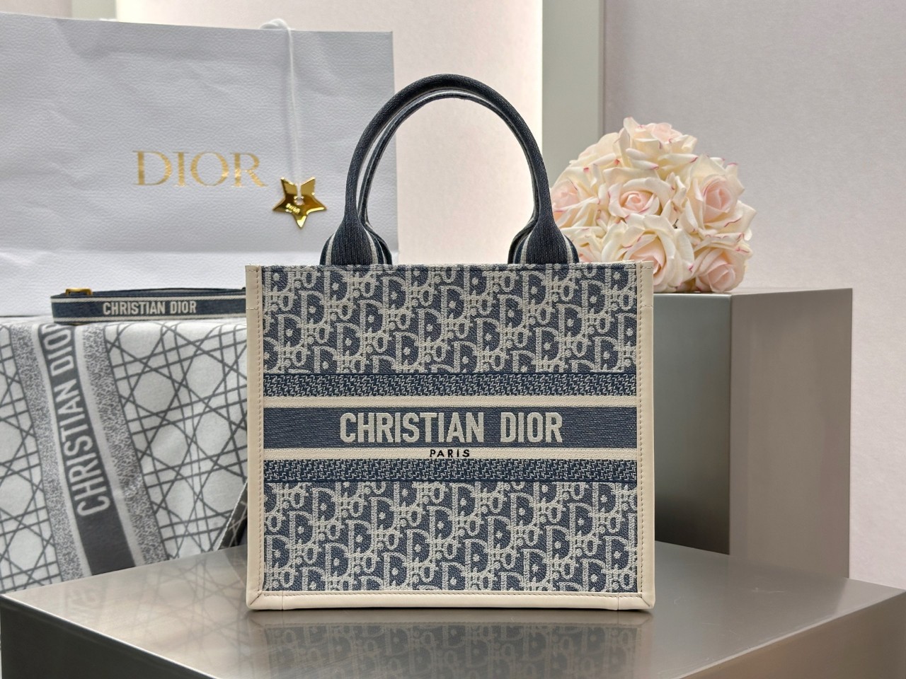 Dior 디올 북토트 Book Tote 신상 가죽 버전 – 블루 오블리크 스몰