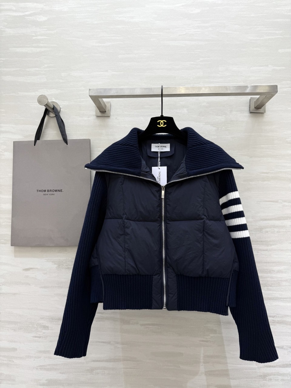 Thom Browne 톰브라운 25FW 니트 배색 네이비 구스다운 자켓 (정품급 퀄리티)