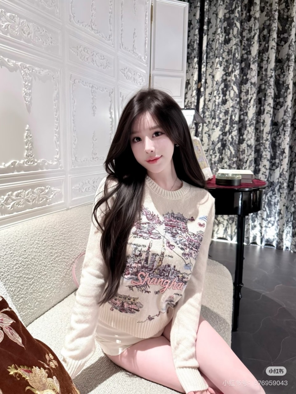 디올 2025 얼리폴 상하이 시티스케이프 자수 라운드넥 니트