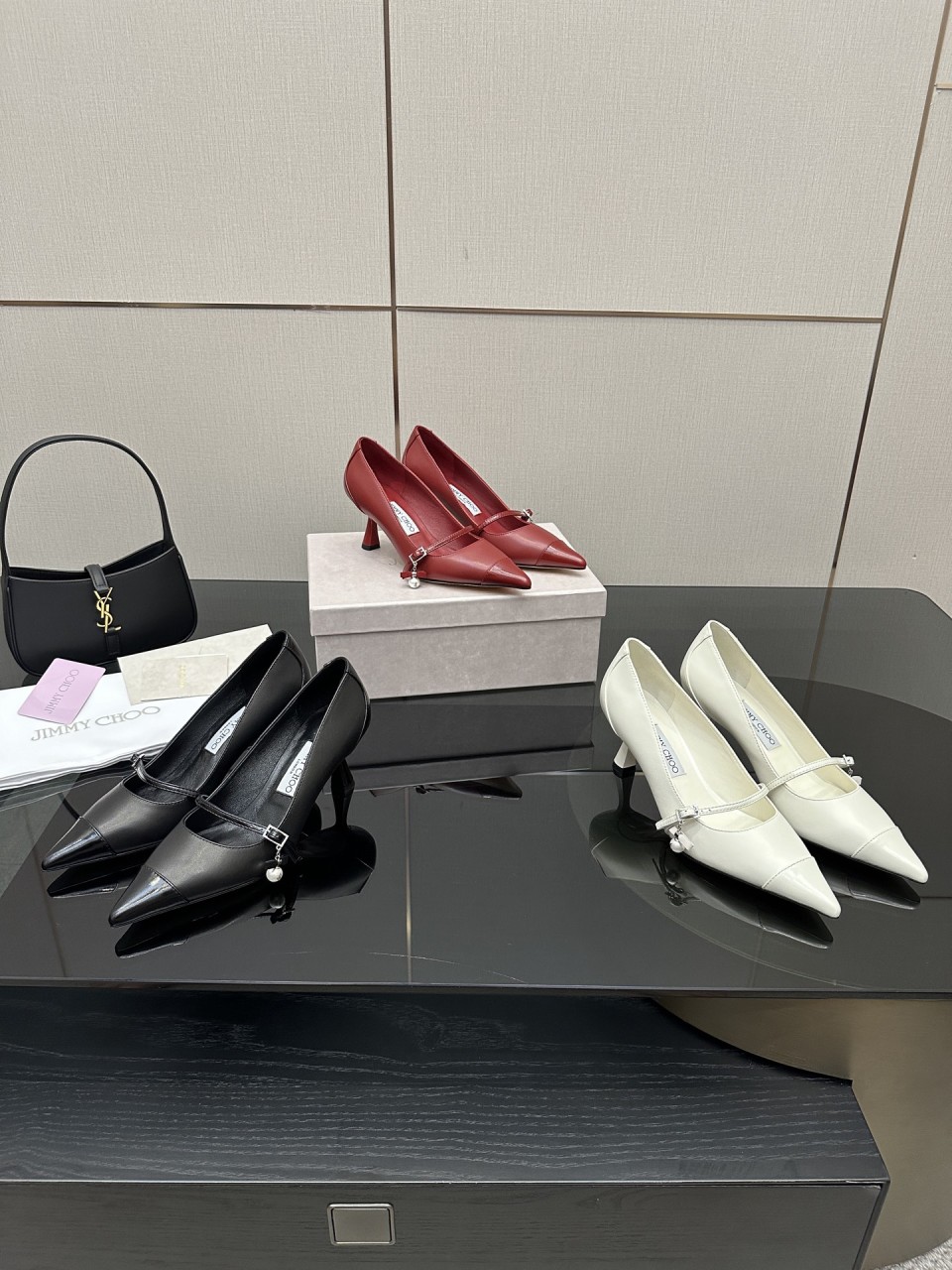 Jimmy Choo 지미추 진주 참 디테일 딥 메를로 파나쉬 가죽 펌프스