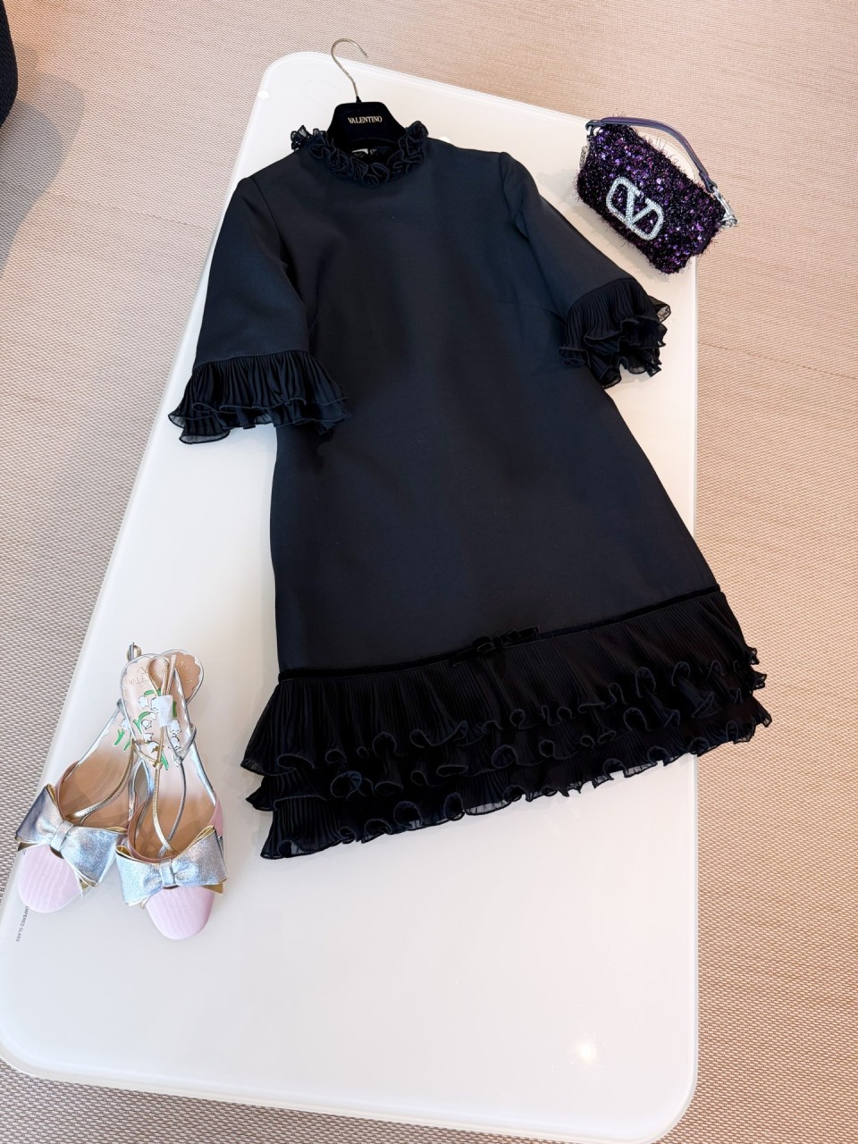 VALENTINO 발렌티노 블랙 러플 실크 원피스