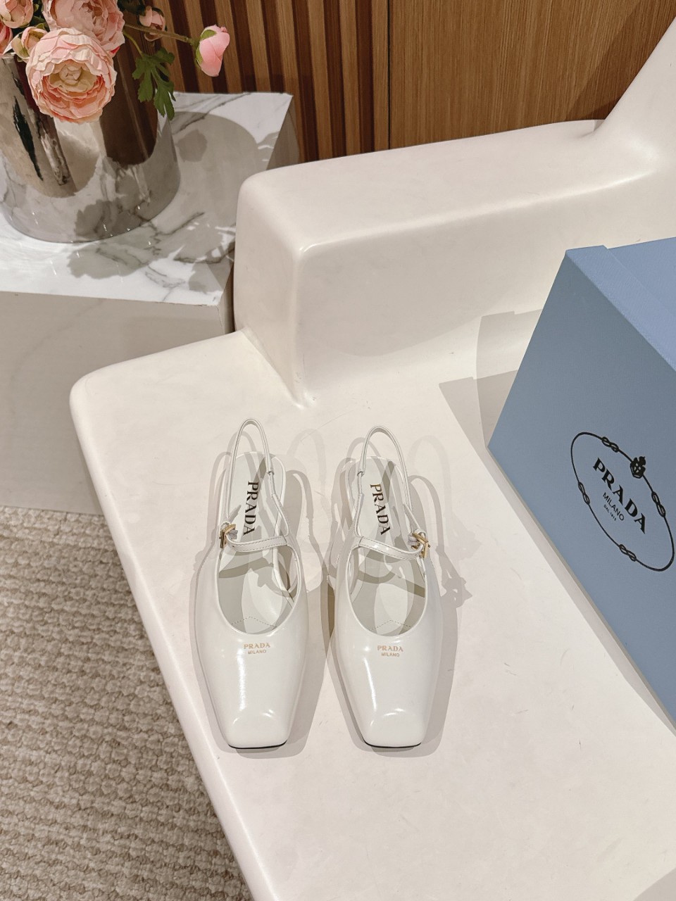 Prada 프라다 25SS 알파벳 로고 메리제인 뮬 – 아이보리