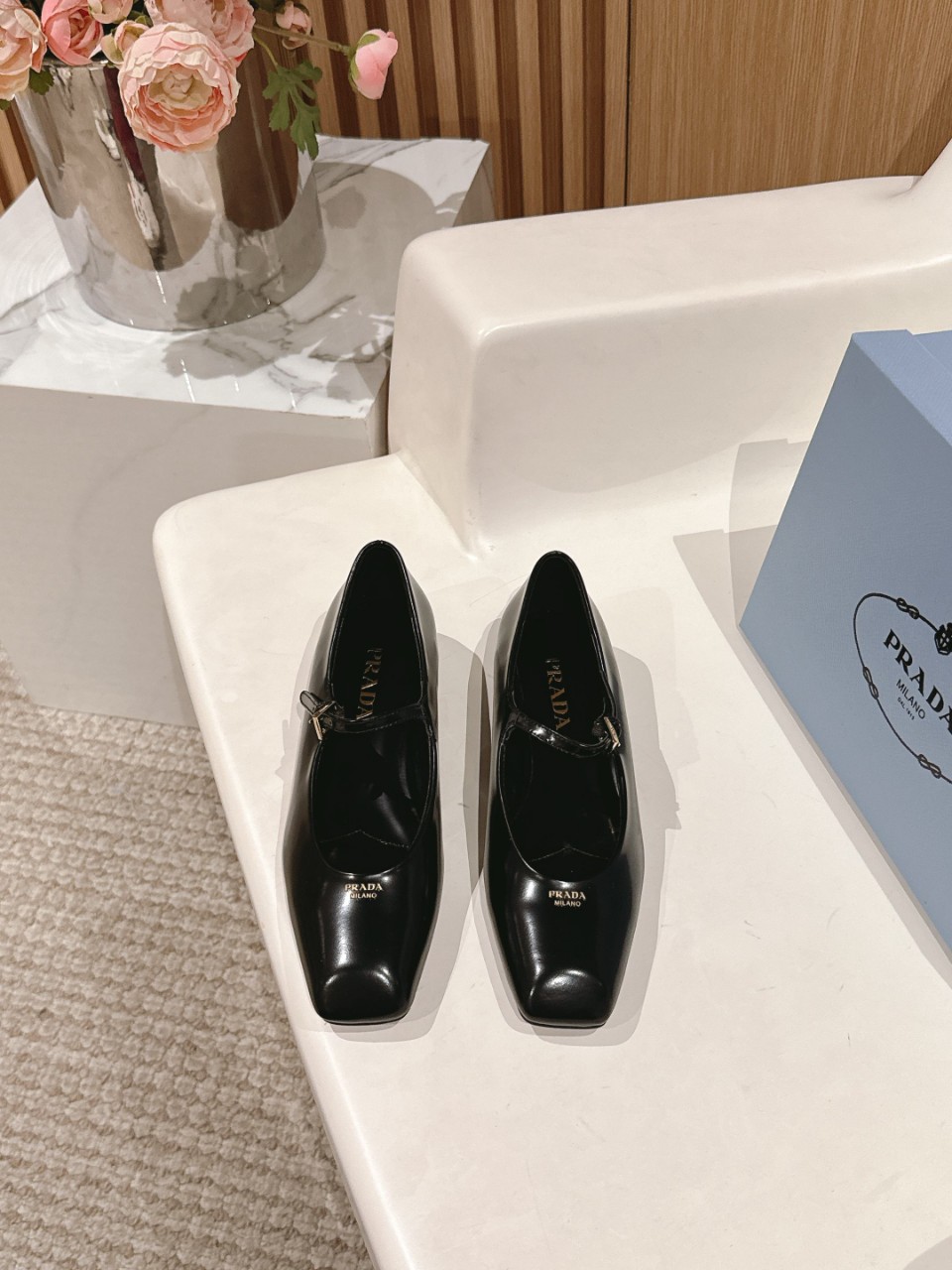 Prada 프라다 25SS 알파벳 로고 메리제인 뮬 – 블랙