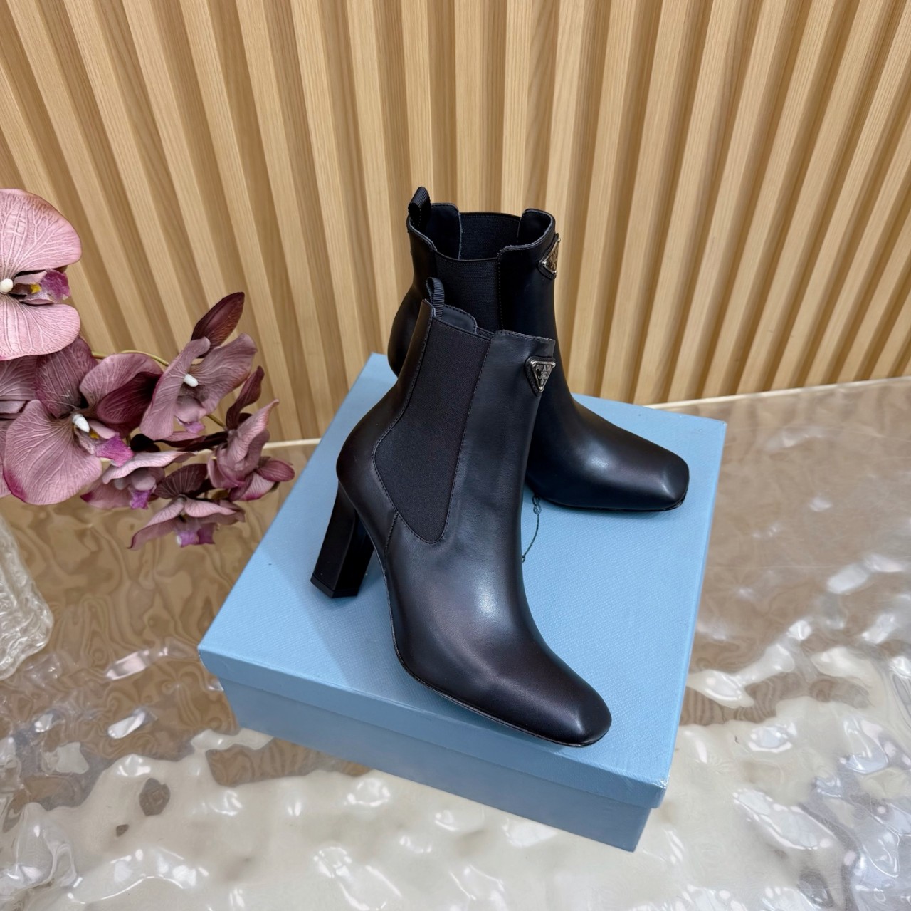 PRADA 프라다 25FW 삼각 로고 하이힐 앵클부츠
