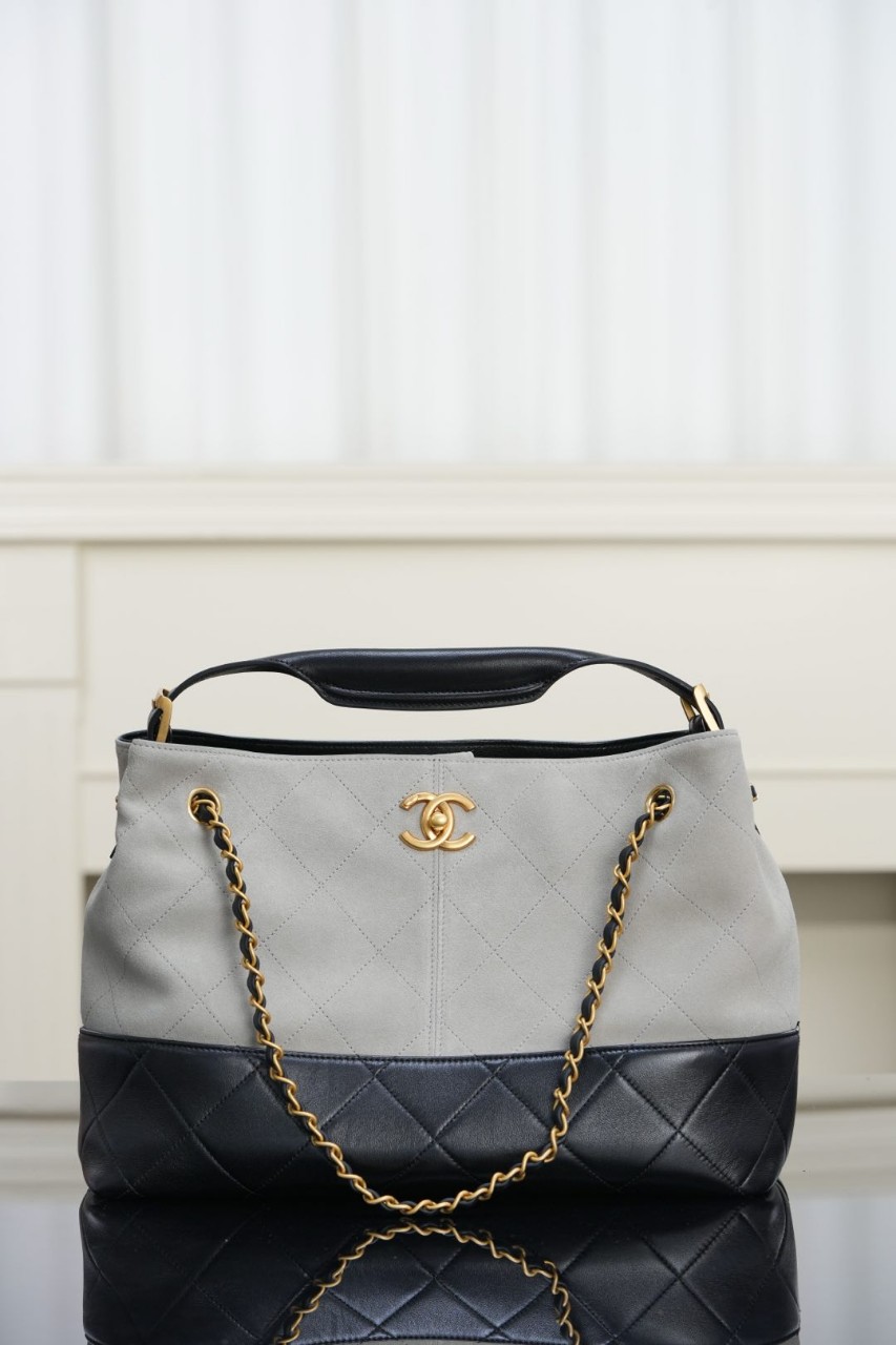 Chanel 샤넬 25A 사슴가죽 쇼퍼백 그레이블랙 · ZP공장 제품