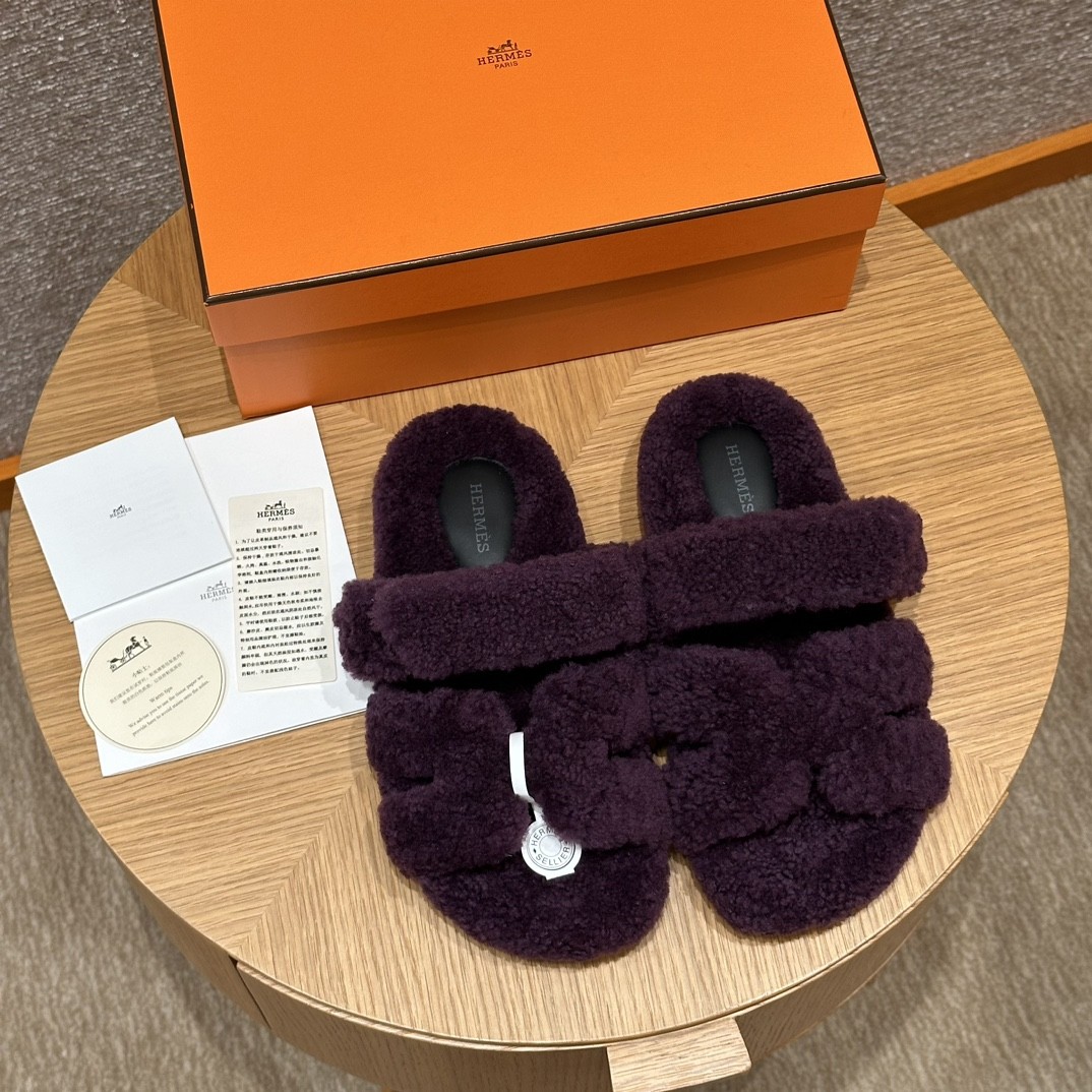 HERMÈS 에르메스 오란 샌들 (양털 울스킨 / Raisin 레이즌 퍼플)
