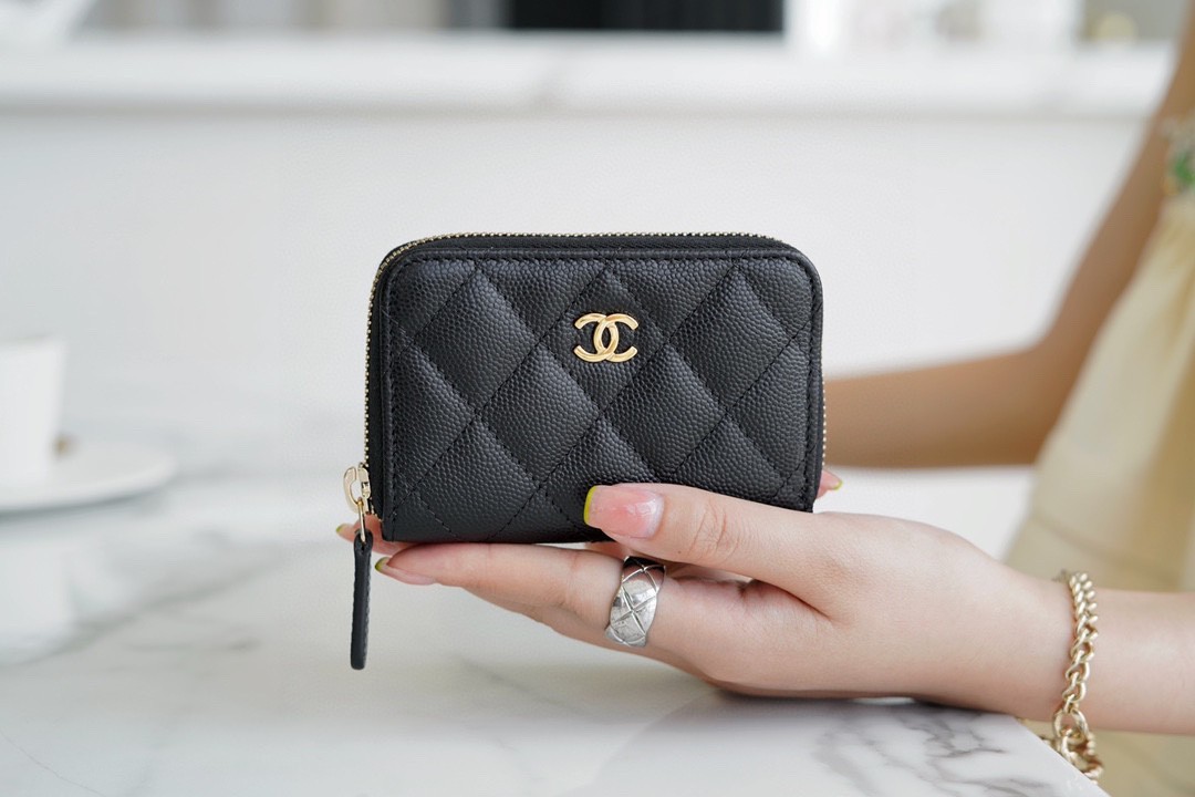 Chanel 샤넬 클래식 플랩 CF 지퍼 카드지갑 블랙 / 골드 하드웨어