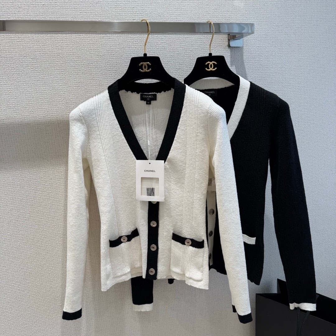 CHANEL 26P 코코 라인 V넥 니트 가디건 (아이보리/블랙)