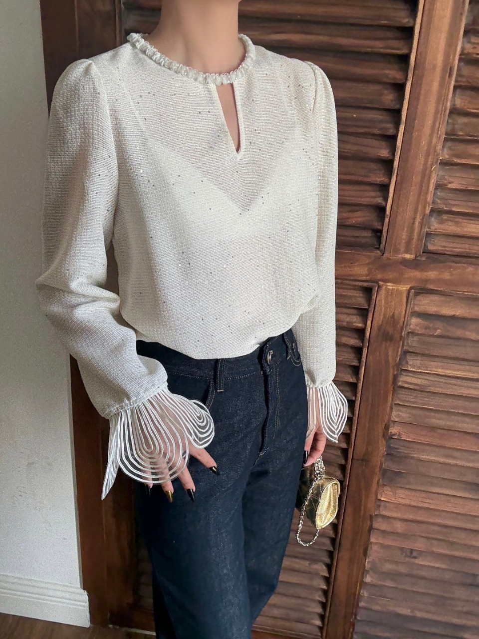 CHANEL 26SS 크리스탈 니트 탑 (아이보리)