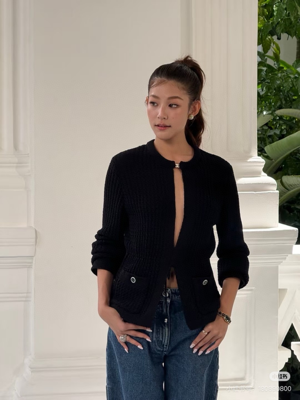 CHANEL 샤넬 크롭 니트 가디건 (화이트/블랙)