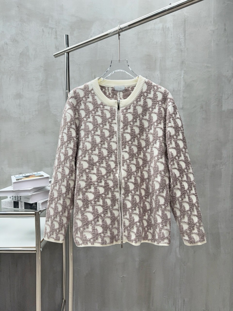 부드러운 울사와 면사를 혼방한 하이엔드 가디건. 클래식한 Dior 모노그램 패턴으로 고급스러운 여성미를 완성했습니다.