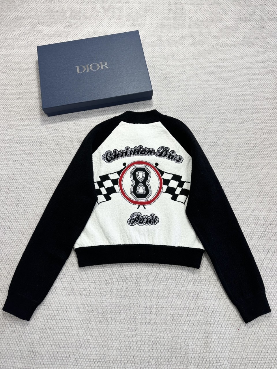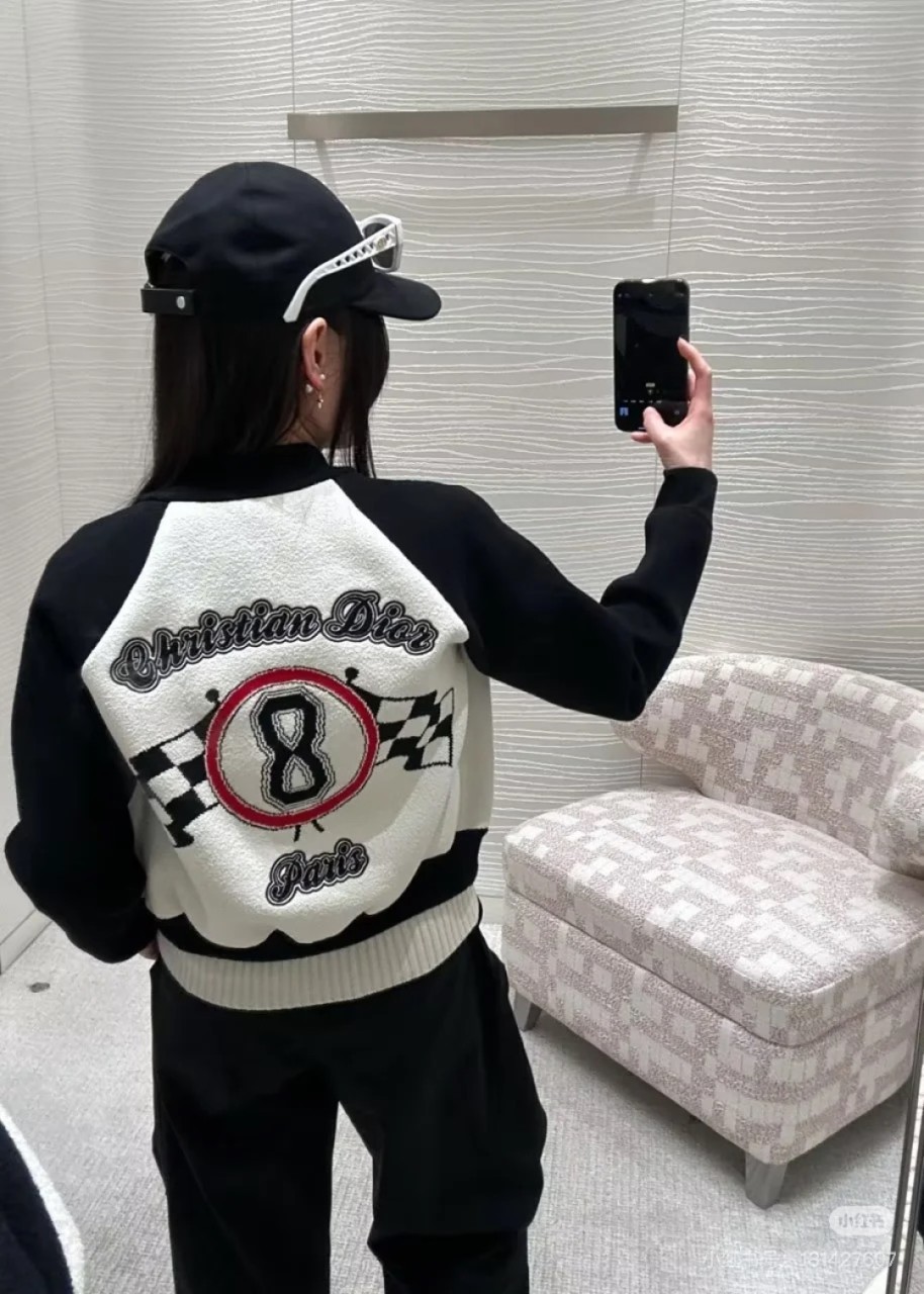 크리스찬 디올의 아이코닉 넘버 8을 담아낸 니트 파일럿 재킷입니다.