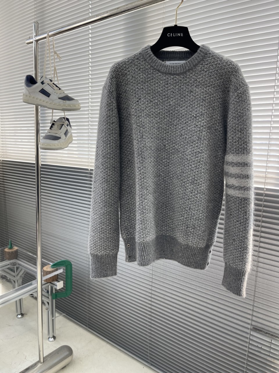 Thom Browne 톰브라운 FW2025 울-모헤어 믹스 라운드 니트- 그레이