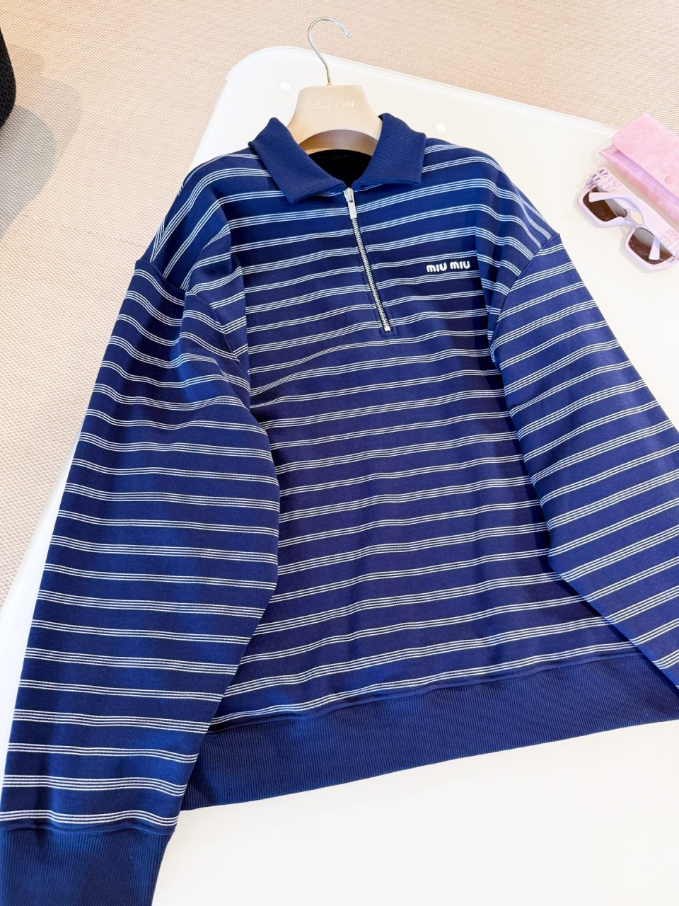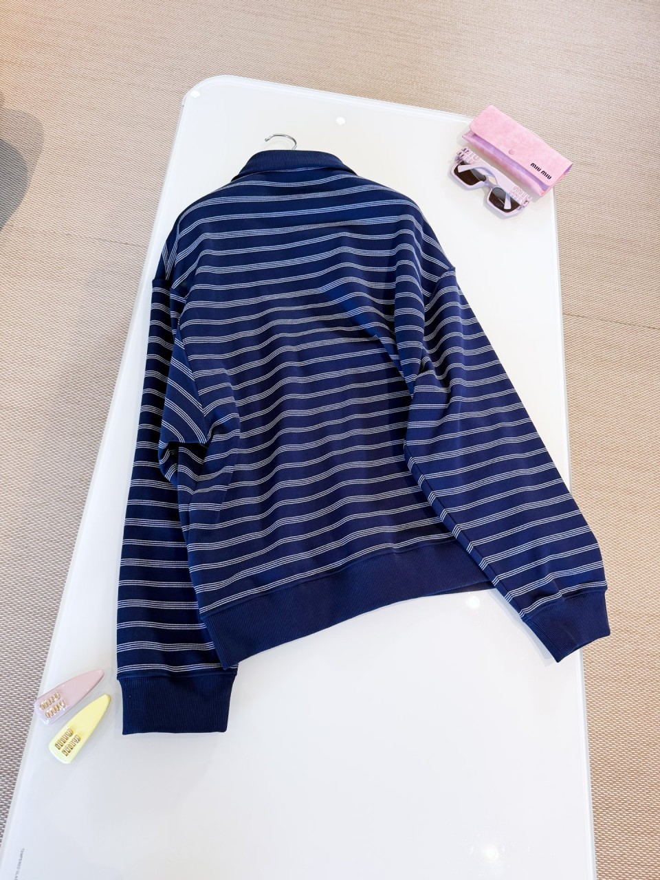 MIU MIU 25SS 미우미우 스트라이프 반집업 니트 폴로