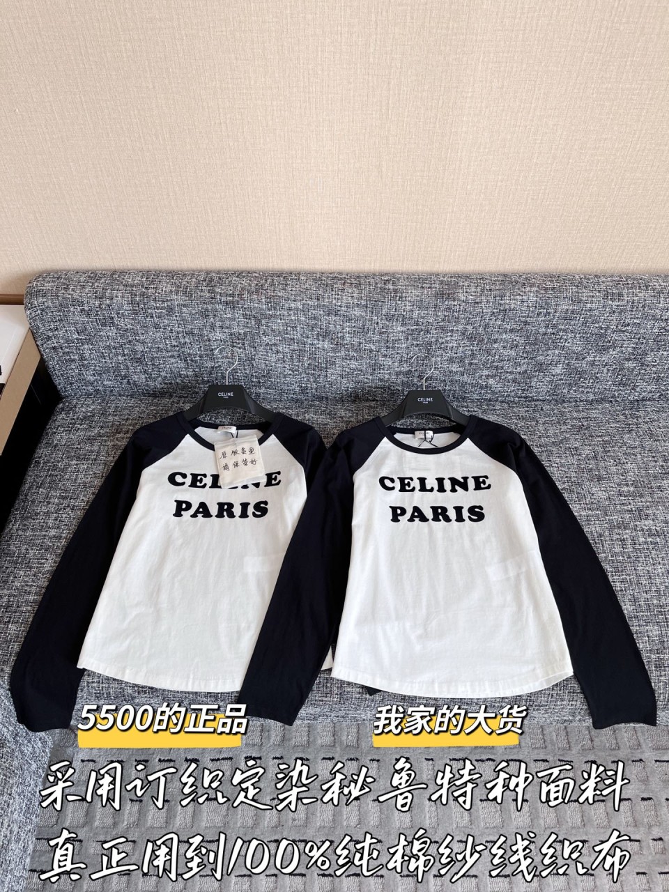CELINE PARIS 블랙&화이트 배색 긴팔 티셔츠
