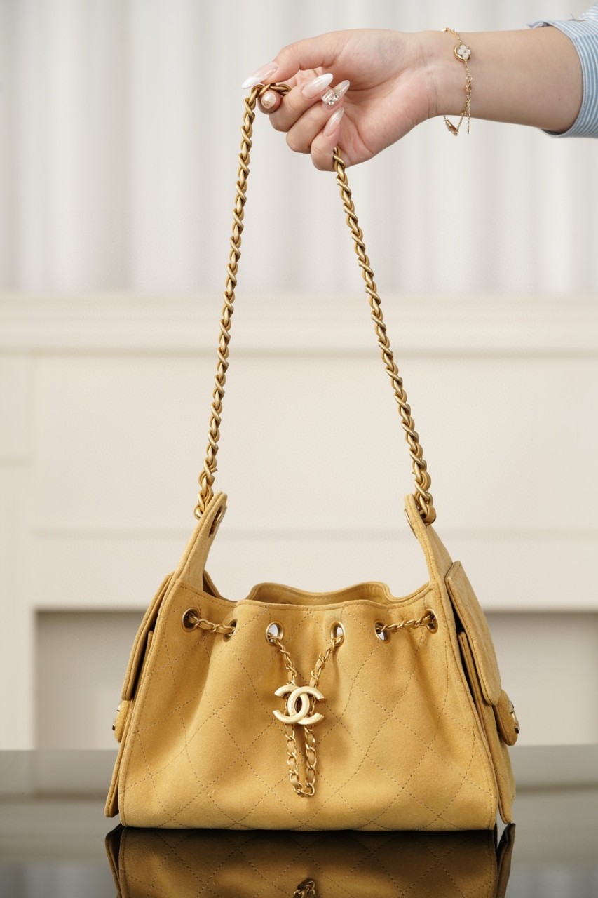 샤넬 2025/26 크루즈 컬렉션 스웨이드 카프스킨 옐로우 25 미니백